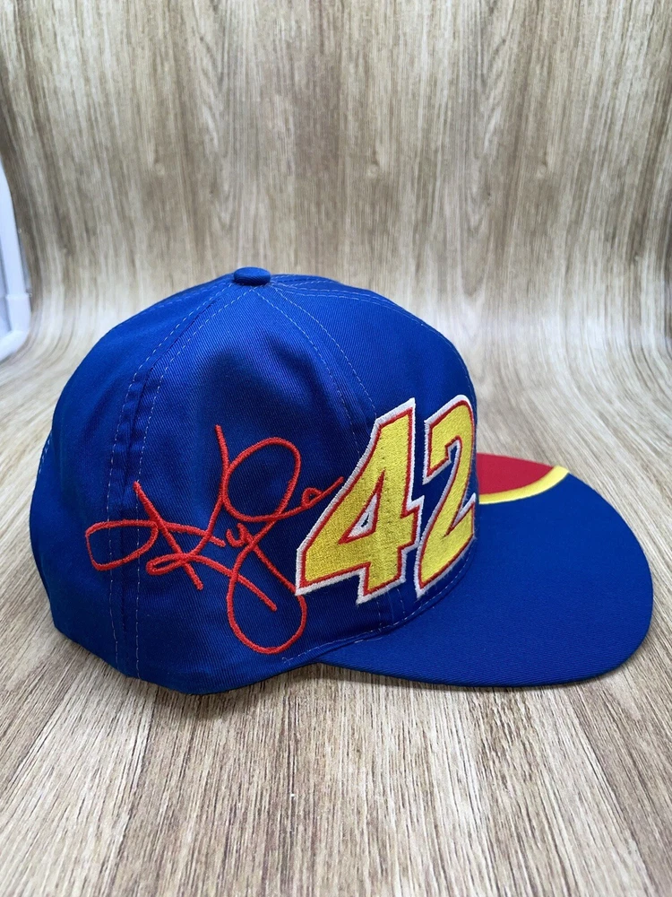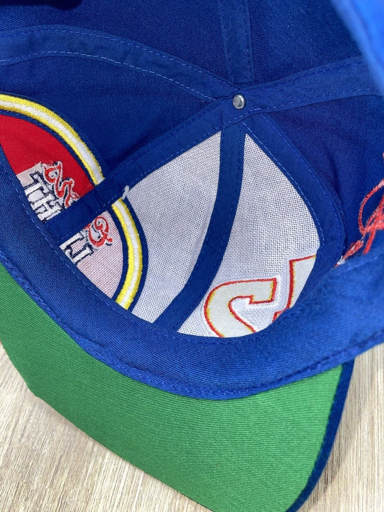 Get your hands on this vintage Coors Light snapback hat featuring Kyle Petty, a famous Nascar racing character. The blue color and adjustable size make it a perfect addition to your collection. This snapback hat is perfect for any occasion, whether you're traveling, going to a party, or just chilling casually. The 90s racing and hipster theme of this hat make it a unique and must-have item for sports enthusiasts. The snapback feature ensures a comfortable fit for all head sizes. This preowned hat is a great buy for fans of Nascar and vintage clothing.