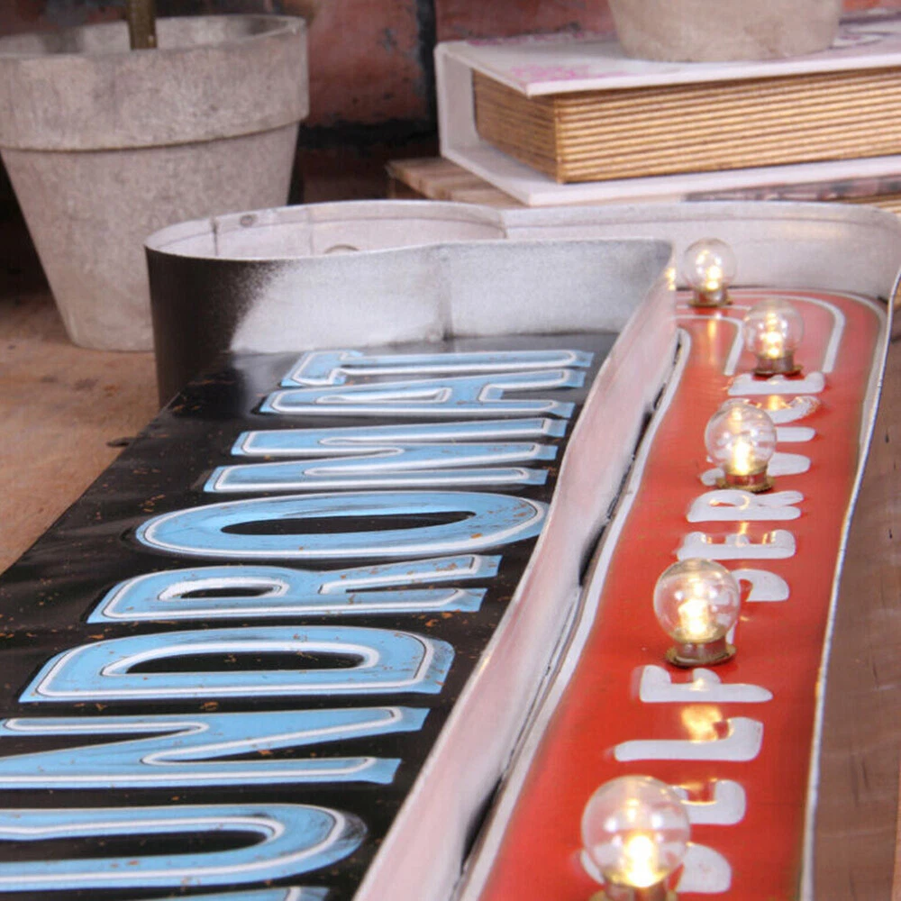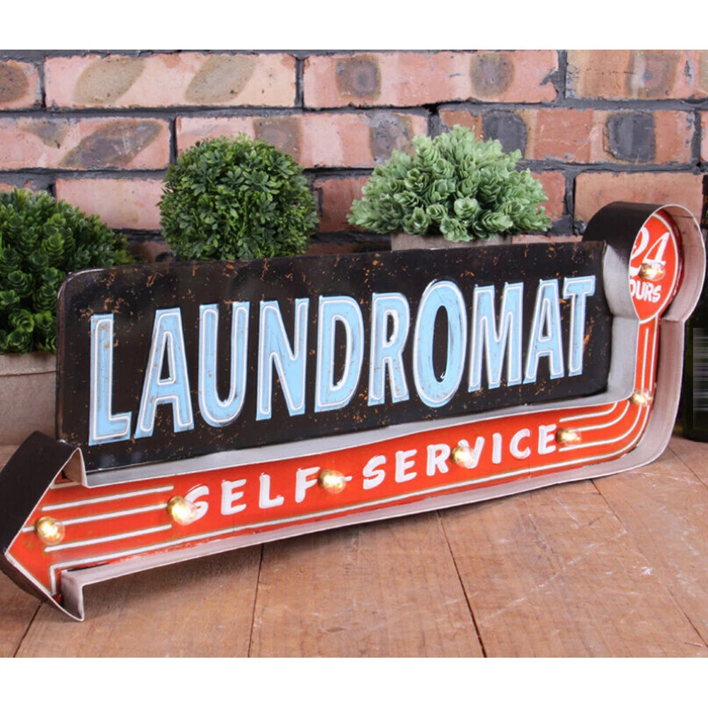 Welcome to my store!!! Vintage LED Light Metal Hanging Sign LAUNDROMAT Laundry Shop Art Wall Decoration Specifications: Material: Iron + Medium Density Fiberboard Color: As Shown Size: As Shown Whether To Bring Led: With Do You Need Batteries: Yes, Use 2 Aa Batteries (Not Included) Net Weight: 0.75Llb Features: 1. High-Quality Materials, Retro Appearance Style, Practical And Durable. 2. There Is a Switch Button On The Side For Convenient Switching. 3. It Has a Wide Range Of Applications, Which Can Be Used For Home Decoration And Store Signs. Packing Including: 1*Led Wrought Iron Wall Decoration Payment Delivery details Terms of sales About us Contact us Payment We accept ebay payment 。 Fees such as import duties, taxes are not included in the item price or shipping costs. These charges are the buyer's responsibility. Delivery details Shipping: 2-9 working days to: USA Terms of sales We maintain high standards of excellence and strive for hundred percent customer satisfaction. Feedback is very important to us. We hope that you contact us immediately before you give neutral or negative feedback, so that we can address your concerns. It is impossible to address issues if we do not know about them! About us Your satis faction is our ultimate goal. We work hard to earn your trust and future business. Our certified technicians have tested each item before shipping. The unit comes with 1 year limited warranty on all manufacturing defects. a) If you receive a defective item, you may return it or ask for a discount. Please contact us within 14 days after you receive the package. b) What you returned must be intact and in its original packaging as re? u. Customer is responsible for shipping costs of the returned item. c) We will cover the cost of shipping back t with the shipping rate indicated in the registration page. We will send you a new unit or refund the full payment you paid. Thank you. Contact us Business Hour Business Hour: Monday To Friday: 8:30 AM to 5:00 PM (Beijing China time) Due to time zones, our reply to your questions may not be immediately. But within above working time, we will reply your email within 24 hours. If it's non-workdays, please kindly be patient and wait till Monday. Please contact us with ebay message. Please feel free to contact us if you have any questions. Monday To Friday: 8:30 AM to 5:00 PM (Beijing China time) Due to time zones, our reply to your questions may not be immediately. But within above working time, we will reply your email within 24 hours. If it's non-workdays, please kindly be patient and wait till Monday. Please contact us with ebay message. Please feel free to contact us if you have any questions.
