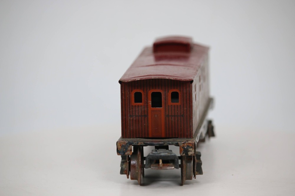 Vintage LIONEL Pre War NYC tin CABOOSE # 1682 SKU#007616 Look closely at the pictures to see further details. We ships USPS PLEASE see photos for detailed condition!! AC PLEASE LOOK AT THE PHOTOS CAREFULLY BEFORE PURCHASING!! If you are purchasing more than one item from us and would like combined shipping, PLEASE request an adjusted invoice from us while still in the cart and BEFORE paying. eBay does not usually calculate combined shipping accurately and you might get overcharged. Please be aware that when we photograph items, we use lighting that will show the details well. Although we try to present the product as accurately as possible, the lighting may affect the overall look of the item by appearing lighter/darker or possibly a different hue than the actual item. Depending on the type of lighting you have in your home, there may be some differences between the photos and the actual item. If this is a concern of yours, please feel free to request additional photos made in natural lighting or ask for a more detailed description of the item PRIOR TO PURCHASE! PLEASE NOTE: We greatly appreciate your interest in our item for sale. We look forward to a pleasant, quick and satisfying transaction for everybody, so please note the following information before bidding. Thank you! ITEM DESCRIPTIONS: * We will try to describe items well and provide plenty of photos. Please review these carefully before bidding or purchasing. * Only the items pictured and described are what you will receive when purchased. * We will occasionally offer an item clearly marked "AS-IS". This means that we are not sure if it works because we are unable to test it for whatever reason. We will offer these at a discounted price then a similar "working" item. It is possible that these items will work fine, but it also is possible that these items are more useful for their parts. Please only bid on or purchase these items if you are well aware of this, as we will only provide refunds of actual item price (no shipping cost refunds) for these items. * If you have any questions that aren't addressed by the descriptions or photos, please feel free to ask before you bid. * May need detailed cleaning SHIPPING: * We usually do not offer shipping to international addresses, but ARE WILLING TO TAKE CONSIDERATIONS. * We try to pack items as carefully as possible, but damage may occur during shipping. If you receive an item that was damaged in shipping, please contact us and we will work with you to resolve the problem. * We will combine shipping costs for all items the same buyer purchases from us within 2 days. Please wait to pay for items until you're done shopping with us. Please contact us if you're expecting to buy more items from us, or to have us adjust the shipping costs. * We will usually ship items out within 24 hours of payment being received Sunday through Friday at noon. We will notify the buyer if there will be a delay in shipping for some reason. Please allow additional time for holidays and weekends when the post office is closed. If payment is received after noon (EST) on Friday, the item might not be shipped until the following Monday. * We do try to recycle shipping materials as much as possible. RETURNS: We abide by eBay's Money Back Guarantee. We definitely want our customers to be happy with their purchase! You may return an item within 30 days of receiving it with the following guidelines: * If the item is defective or damaged (unless we clearly marked the listing "AS-IS"), the buyer will receive a full refund after the buyer returns it and it is received by us. Customers who falsely claim their item is defective, damaged, or not as described in order to receive a full refund and free return shipping will be permanently blocked from making future purchases from us. * If the item is as described (including "AS-IS" items) and the buyer decides for any other reason than defective/damaged to return it, only the actual price of the item will be refunded once it has been returned and it is received by us. The buyer will be asked to pay all original and return shipping charges. This includes all reasons other than defective/damaged, including wrong size, wrong type, changed mind, etc. All "AS-IS" items will fall into this category of return. Please make sure the item is what you want before purchasing it. * Please contact us before initiating a refund request. FEEDBACK: We always leave feedback at the end of transaction. We consider the transaction to be over when we receive feedback from the buyer confirming the item arrived satisfactorily. If you are unsatisfied with your purchase please contact us before leaving neutral or negative feedback. WE APPRECIATE POSITIVE FEEDBACK IF YOU ARE SATISFIED WITH YOUR PURCHASE! THANK YOU FOR YOUR INTEREST IN THIS ITEM!