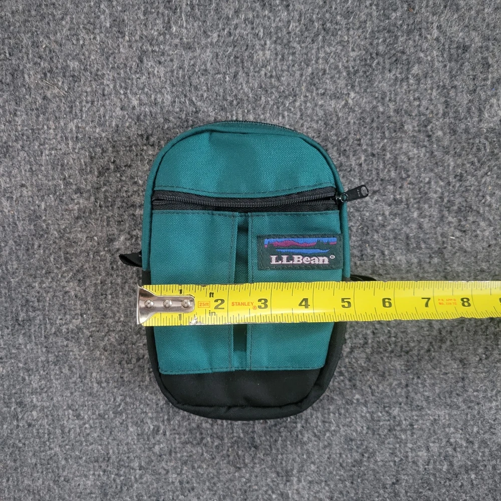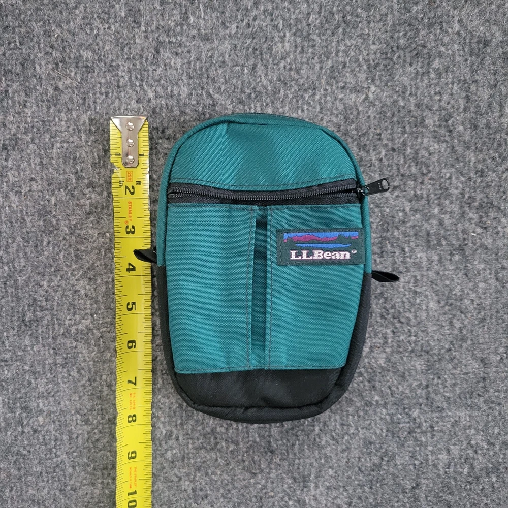 This vintage LL Bean small bag in emerald green is a classic addition to any wardrobe. Made of durable canvas material, this tote-style bag features a zip closure and a solid pattern. It's perfect for men who need a stylish and functional accessory. The bag is small in size, making it ideal for carrying your daily essentials. Its vintage style adds a touch of nostalgia to your outfit. Whether you're going to work or out for a casual day, this LL Bean bag is a great choice.