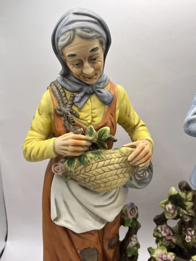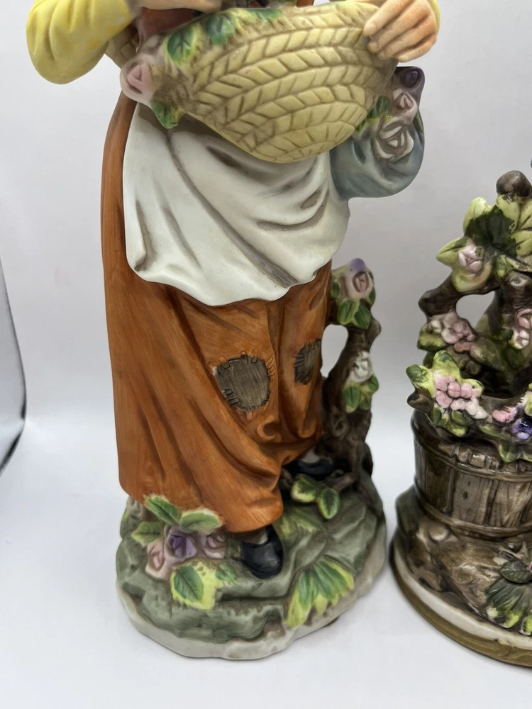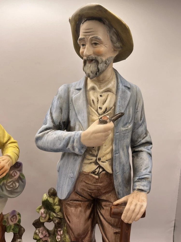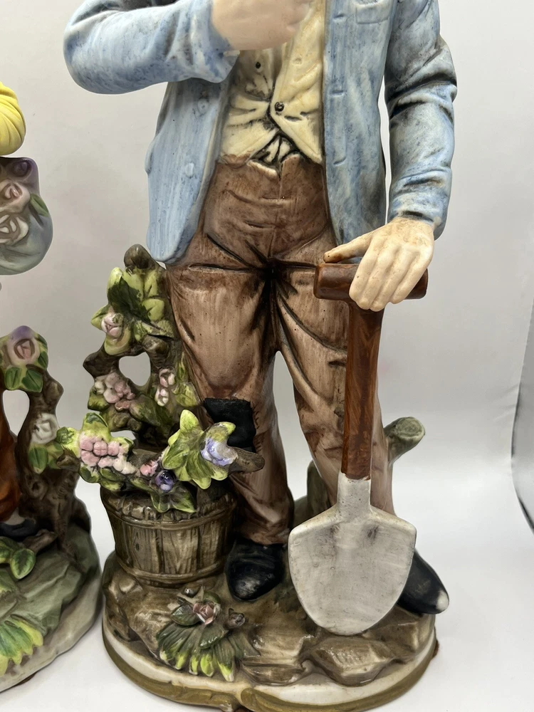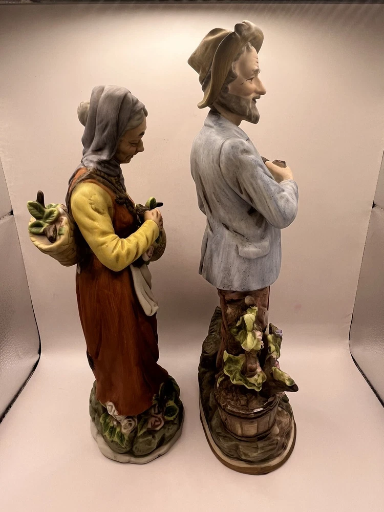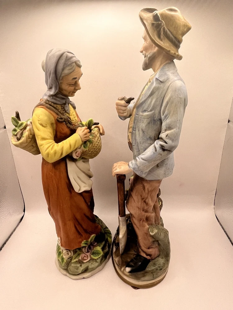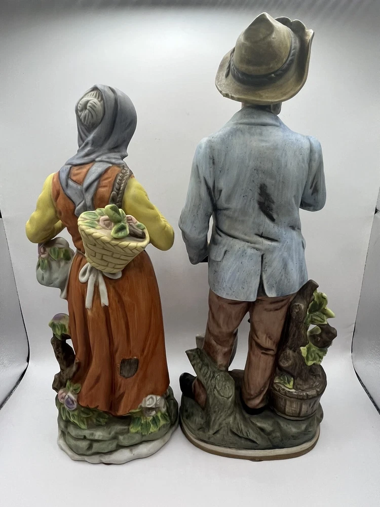 This vintage porcelain figurine set features a charming farmer and wife, perfect for any collector of vintage decorative pieces. The intricate details and beautiful colors make this set a great addition to any room or occasion. Crafted in Japan by ARDCO in 1975, these figurines are made of high-quality porcelain and feature a painted finish. The set includes two figurines, both depicting the farmer and wife in different poses. The multicolor design adds a touch of rustic charm to any space.