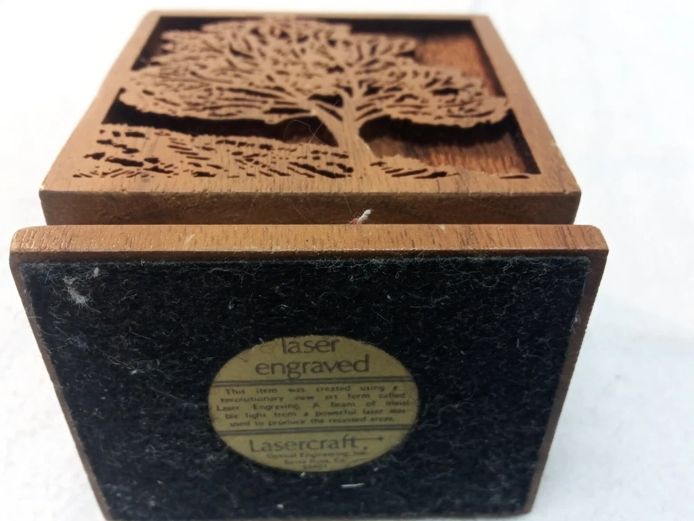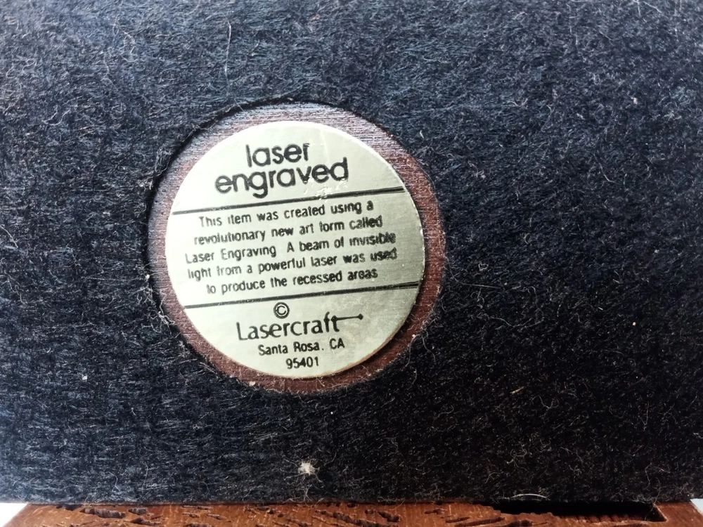 Vintage Lasercraft American Walnut Wood Laser Engraved 4 Piece Desk Set Trees
