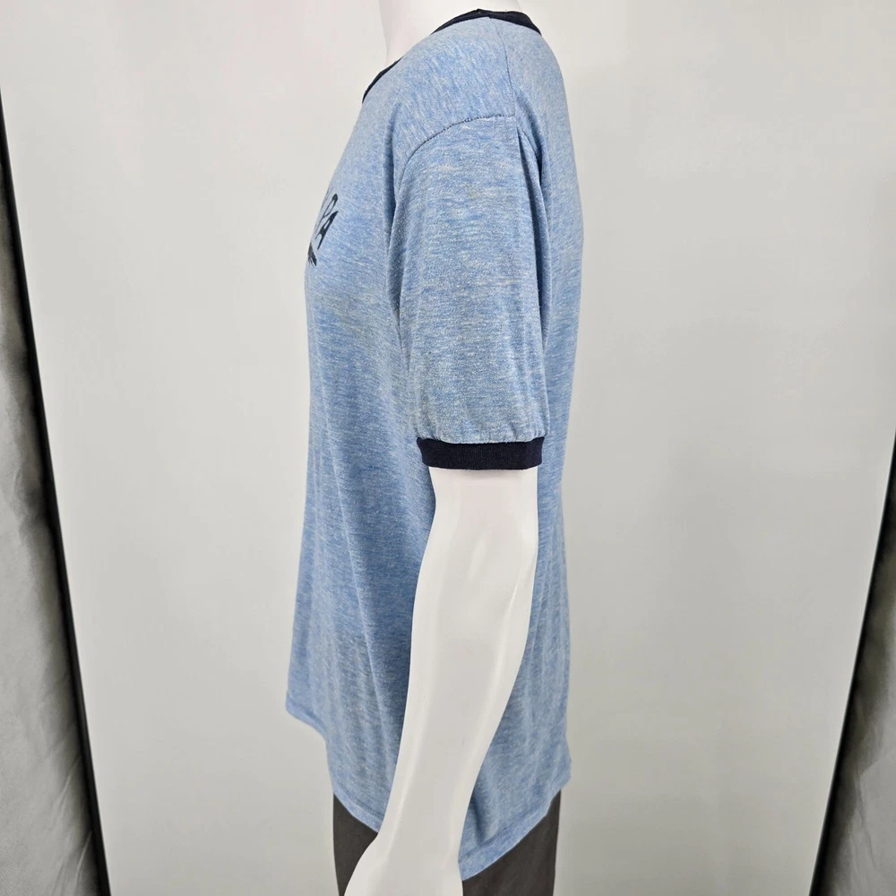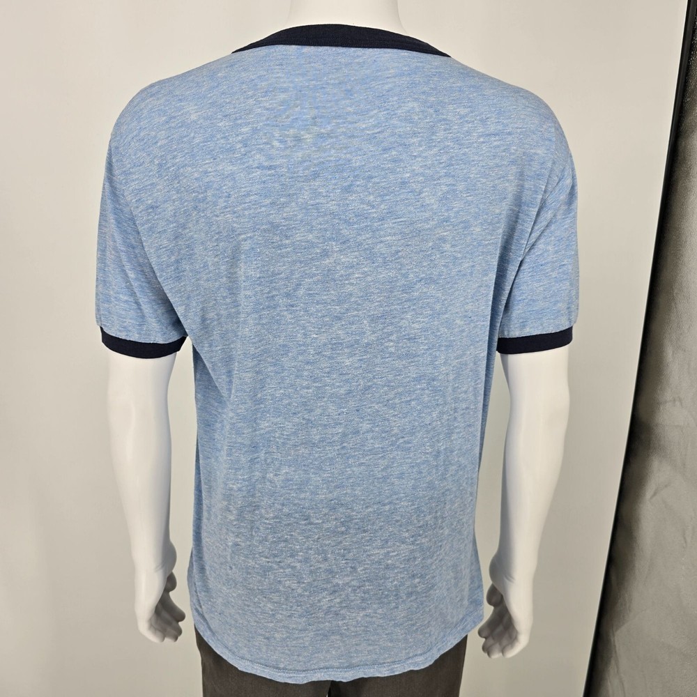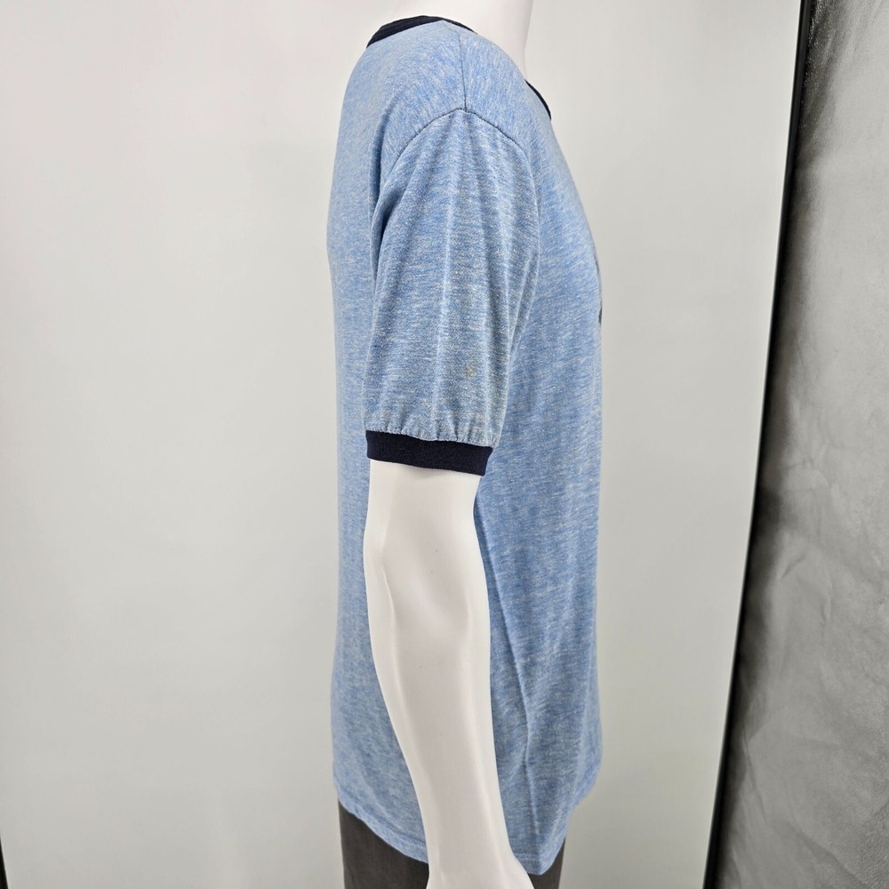 Vintage 1970s/1980s Worthington Industries Inc. Heather Blue Ringer T-Shirt (XS)