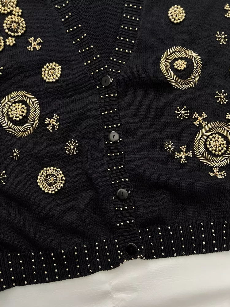 *** It has some loose beads but nothing mayor*** It is in very good condition! Could fit better to size L/XL, it does stretch. Details and measurements are in the photos Style: Christmas, holidays, grandma core, vintage, Witchy, Whimsigoth No returns or refunds Pet friendly home Thank you #114