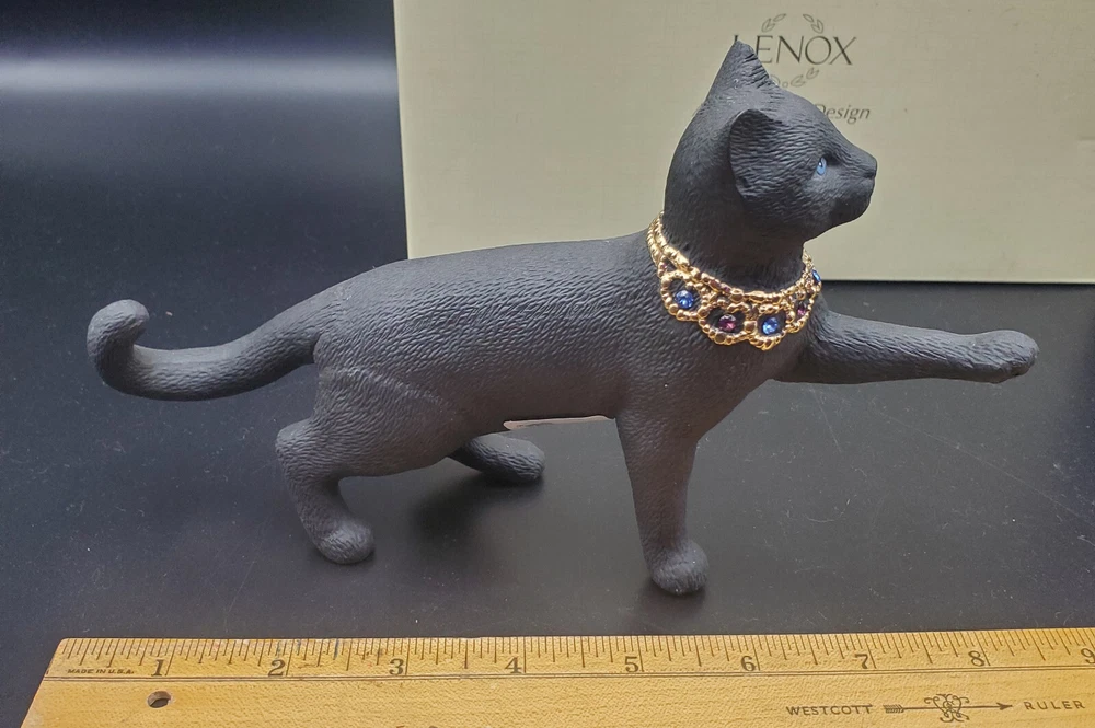 Add this beautiful Lenox American by Design Black Cat Figurine to your collection today. Crafted from high-quality porcelain, this figurine is perfect for all occasions. The intricate details bring this charming cat to life, making it a wonderful addition to any room. The black color of the cat adds a touch of elegance to your decor. Whether you're a cat lover or just looking for a unique collectible, this Lenox figurine is sure to impress. So why wait? Add this delightful piece to your collection today.