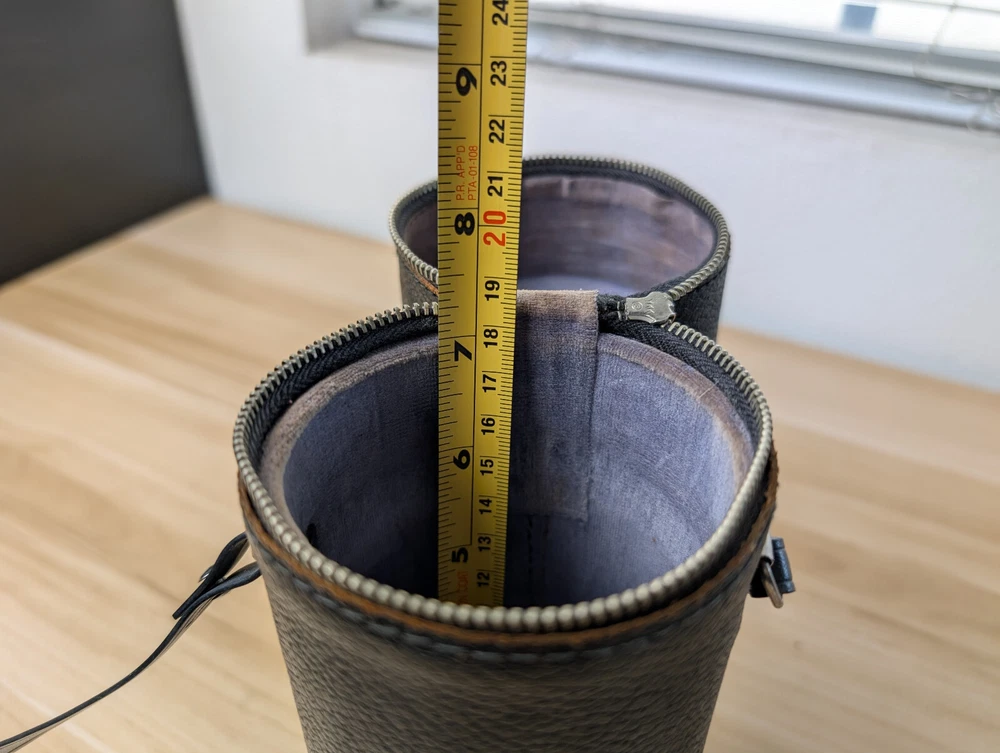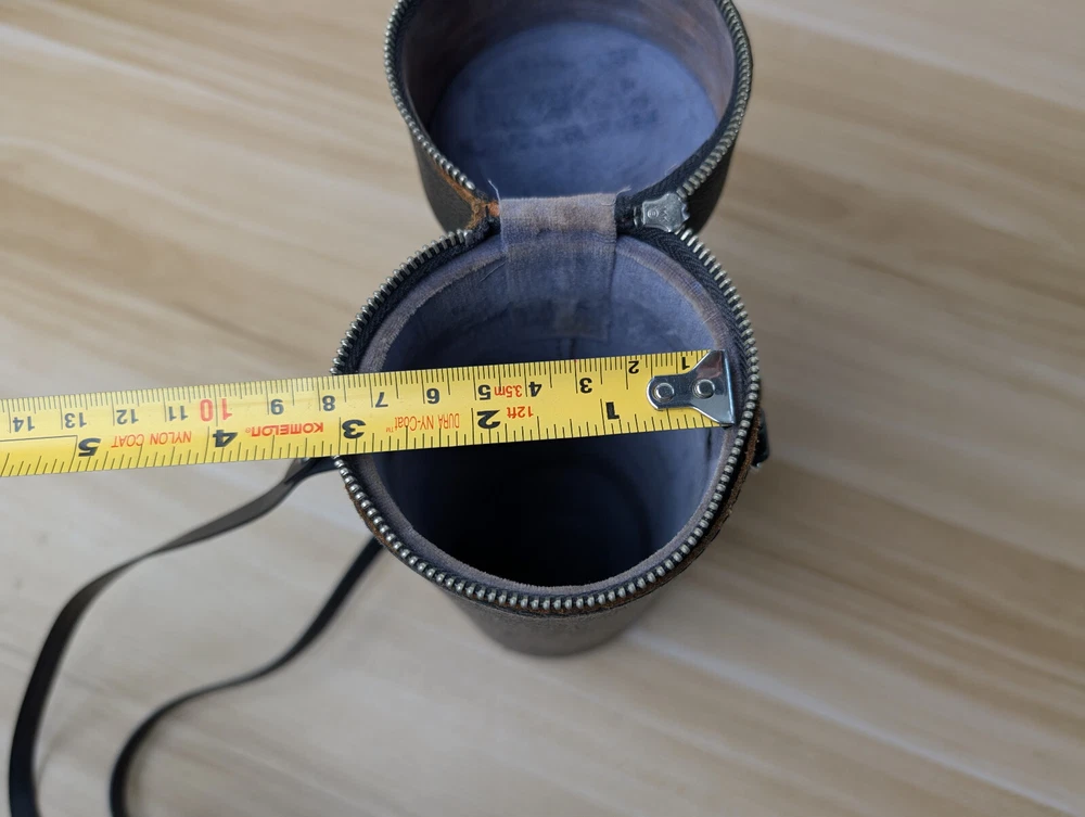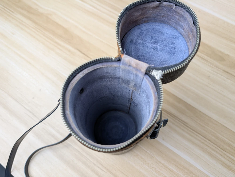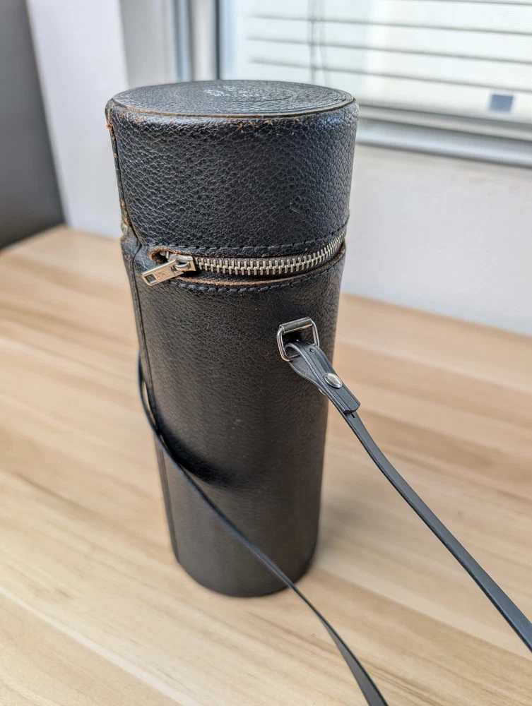 Vintage lens leather case. Inside dimension: 8.5" (including cap) x 2.75” Excellent condition, some minor wear from age.