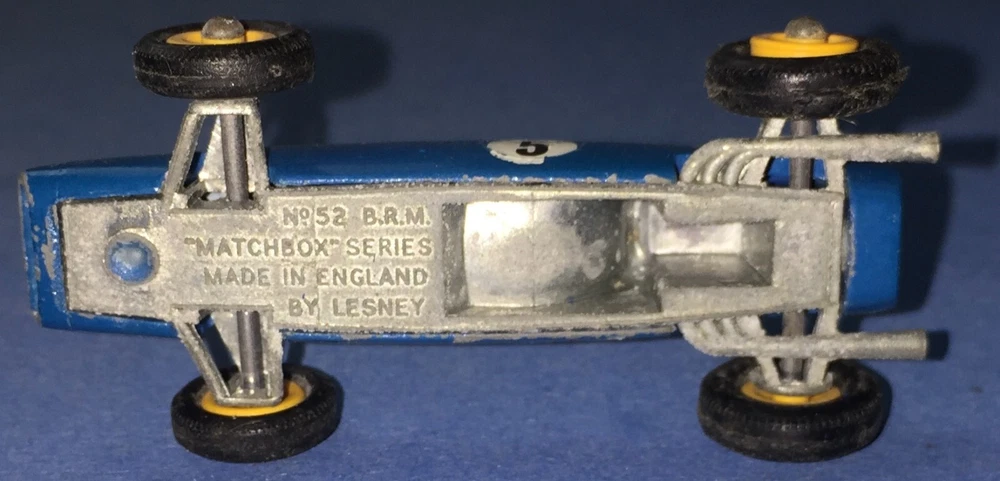 Rev up your collection with the VINTAGE MATCHBOX LESNEY NO.52 B.R.M. #5 race car. A classic piece from the Matchbox Lesney series, this diecast model boasts an eye-catching blue finish with white and orange accents, capturing the essence of speed and style. Measuring at 2 5/8 inches, it's the perfect size for display or track play. Crafted with precision, this car hails from the United Kingdom and is suited for collectors of all ages, from 3 years and up. Not just a toy, but a nostalgic nod to the history of motorsport, the Matchbox Lesney No. 52 B.R.M. is a must-have for enthusiasts and a delightful find for those who appreciate the charm of vintage diecast vehicles.