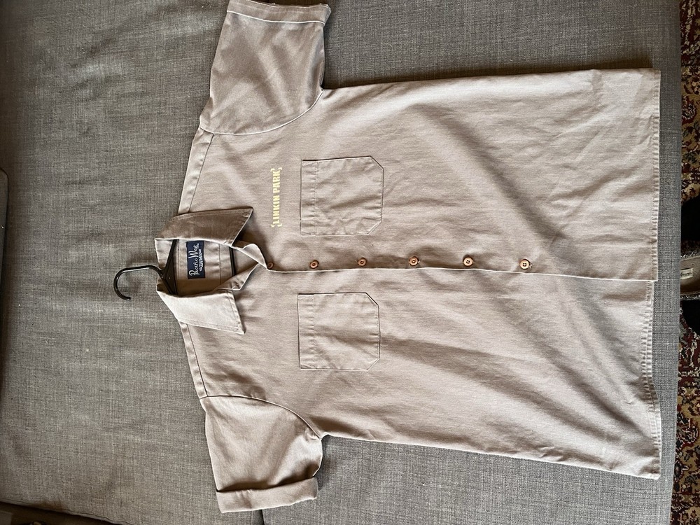Straight out of the 2000s! This Vintage Linkin Park work shirt is a casual button-down with a solid gray color and a collared neckline. In great condition!