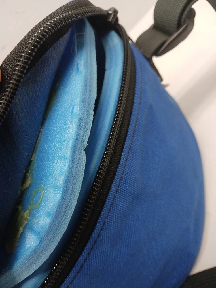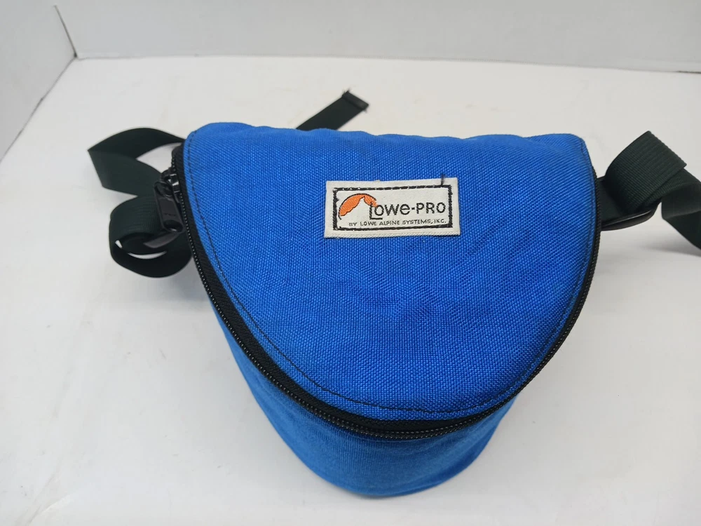 Vintage Lowe Pro Alpine: Camera Cross Body Bag Blue There are some scratches on the foam on the inside Some of the glue on the inside lid is coming apart