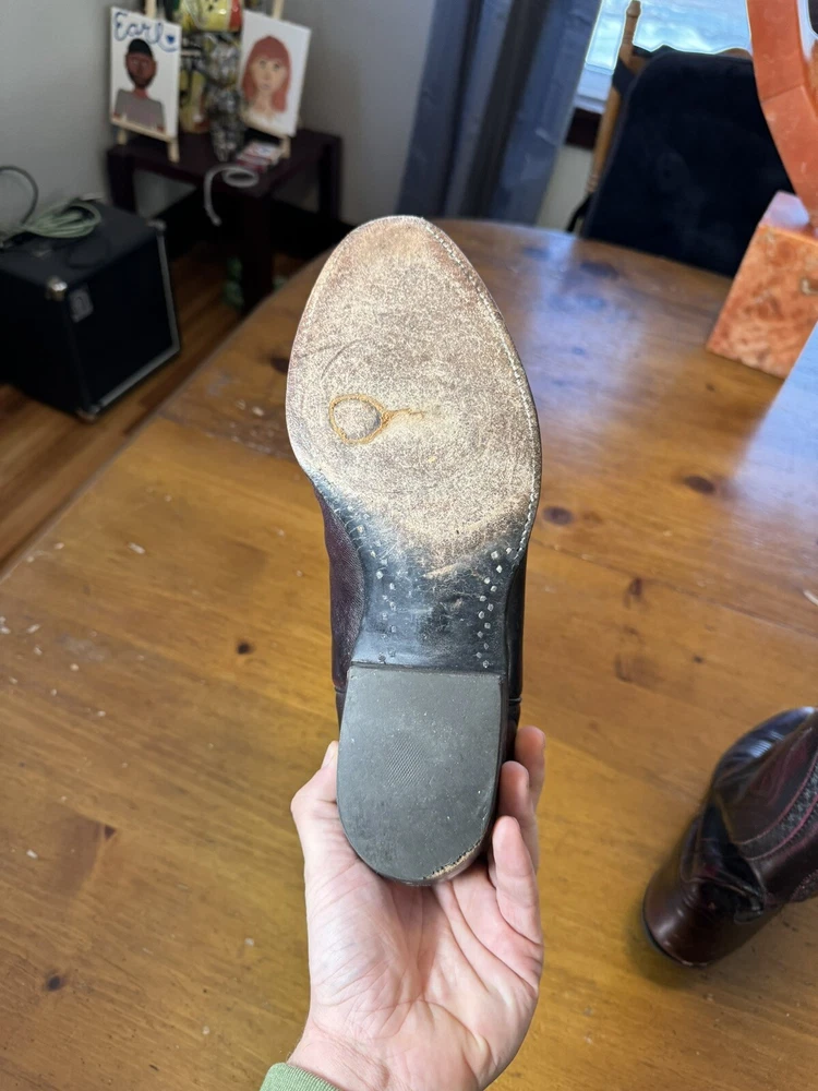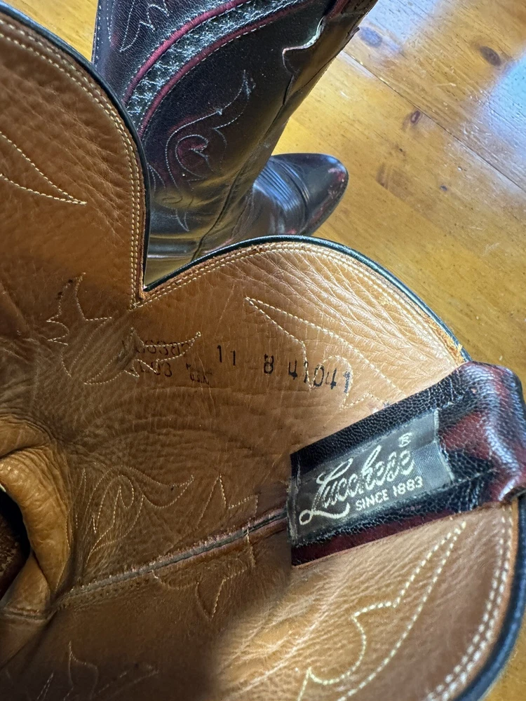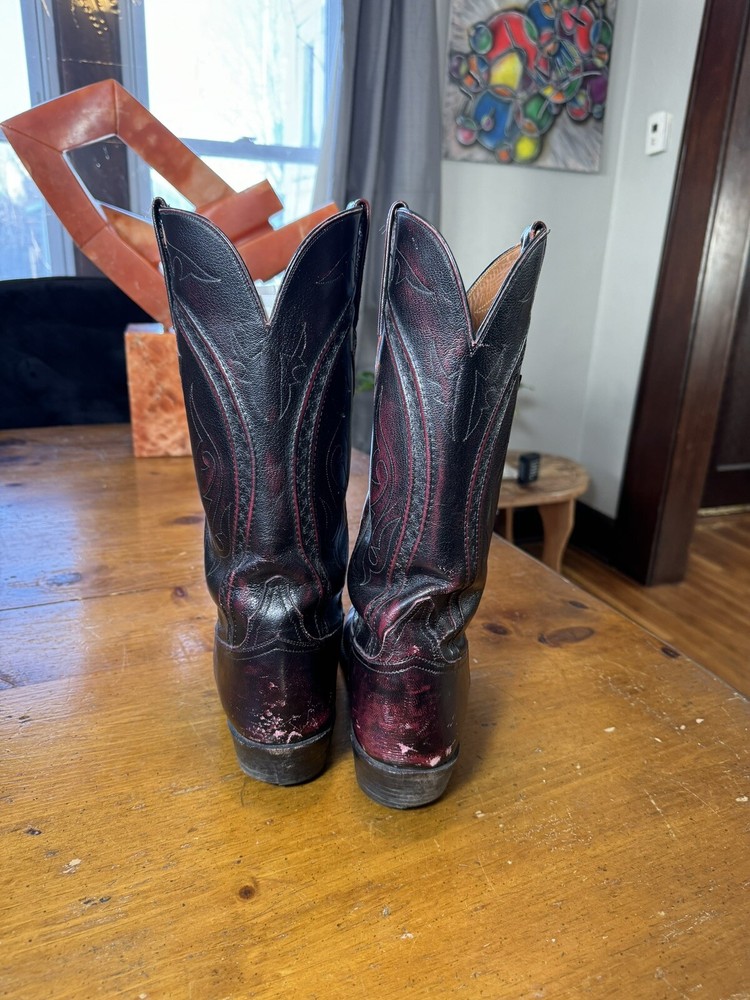 Vintage Lucchese Boots Distressed Black Cherry Men's Size 11 B French Toe USA Made in USA Wicked cool Size is 11 B Condition is 8/10 distressed as shown Message me with any questions and offers you have!! CAN ALWAYS PROVIDE MEASUREMENTS Always willing to do bundle deals , feel free to look through all the items I have available! Trusted Seller With Over 12,000 combined Sales across all platforms , buy with confidence!!!