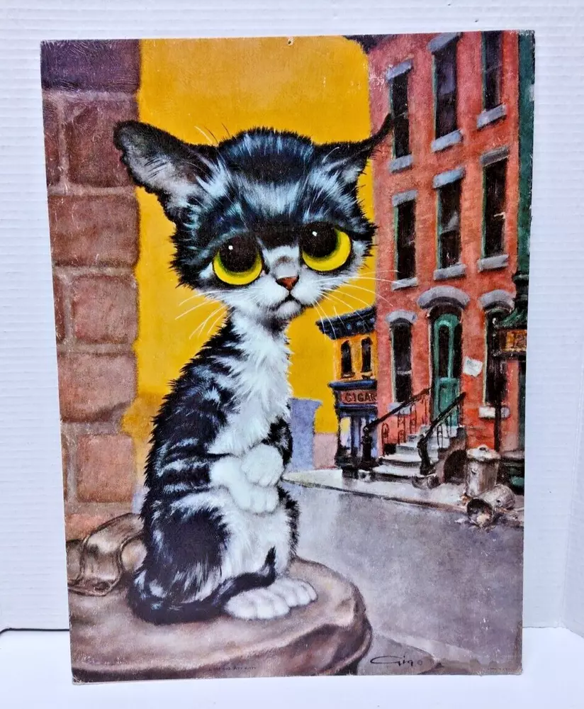 MCM Lithograph print of the Original Painting Pitty Kitty. Great vintage piece for a gallery wall, Retro Art collection.