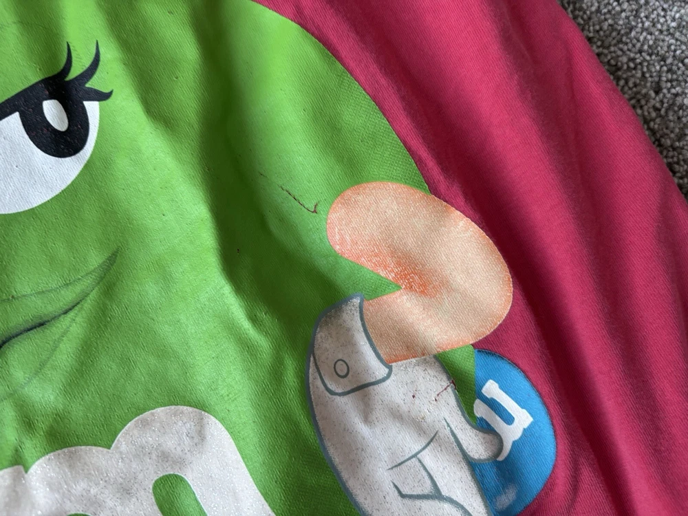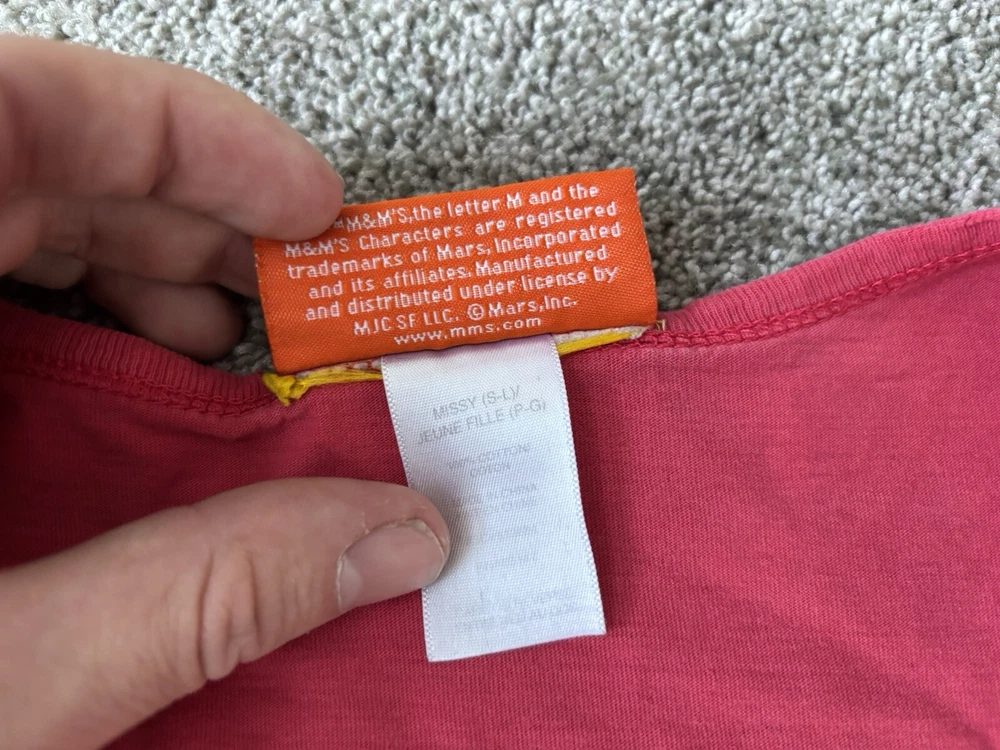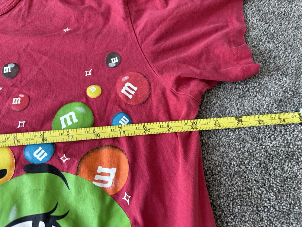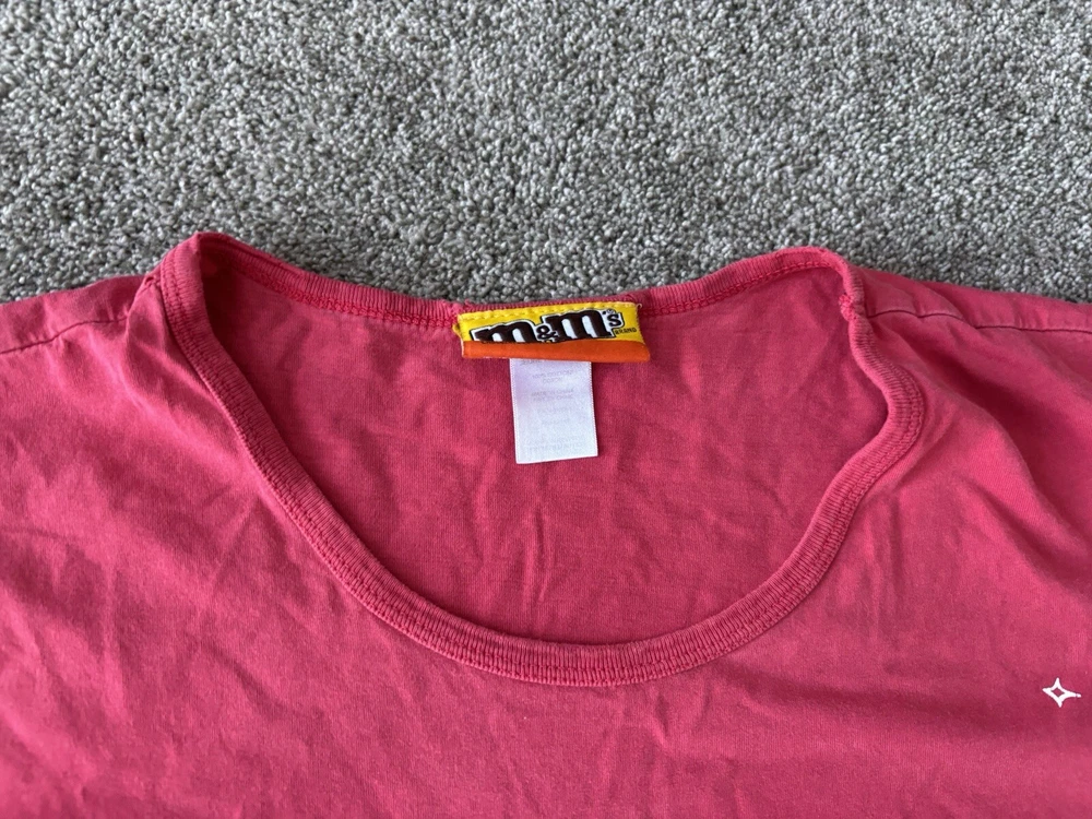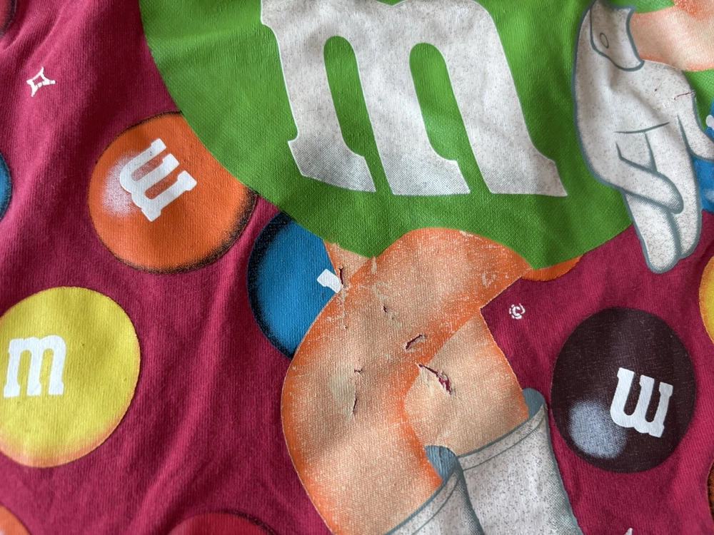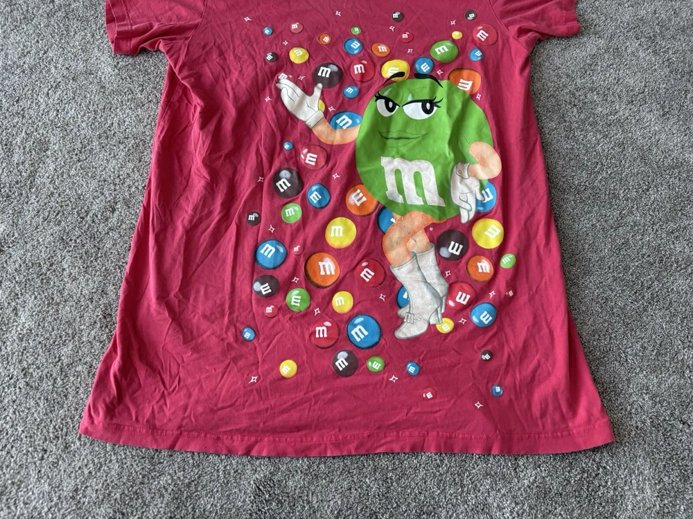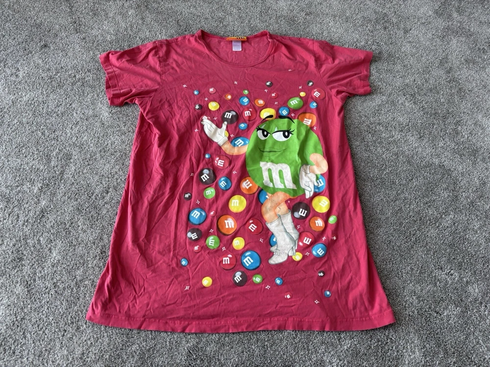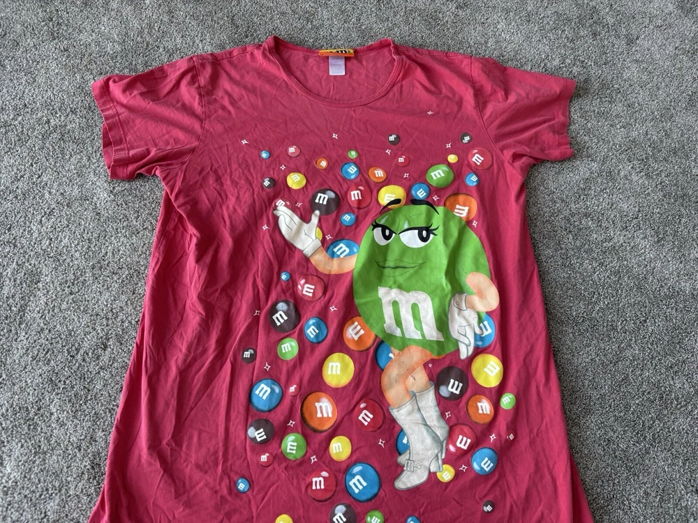 This vintage M&M's night sleep shirt for women features a red color with a graphic print of classic M&M's chocolate candy. Made from 100% cotton knit fabric, this lightweight sleepshirt has a round neck, short sleeves, and a pullover closure. With a one-size fit suitable for sizes small to large, this nostalgic piece is perfect for fans of M&M's looking for a comfortable and stylish sleepwear option with a touch of 90s nostalgia. Perfect for summer, fall, and spring seasons, this machine-washable sleepshirt is a fun addition to any sleepwear collection.