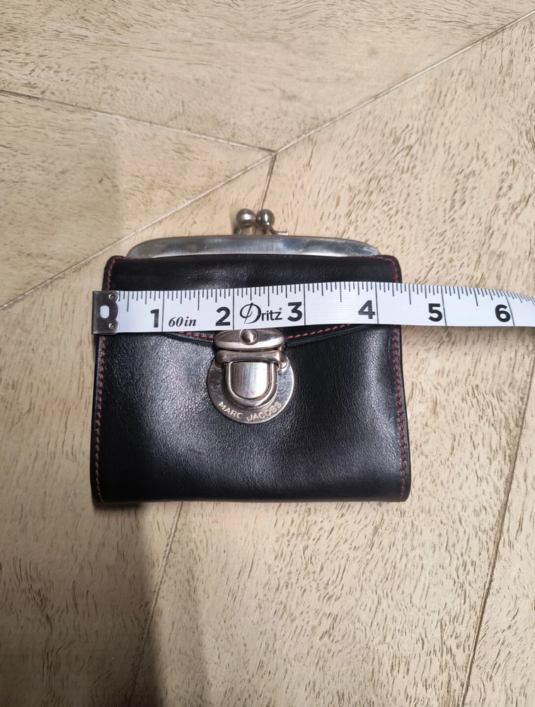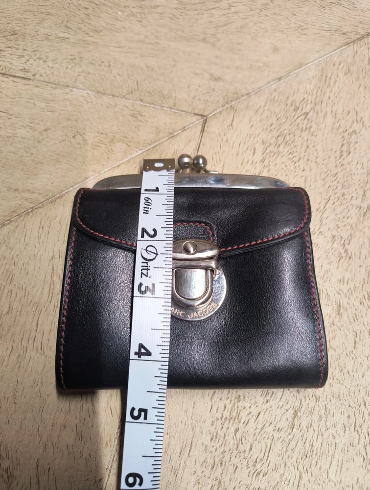 Awesome vintage Marc Jacobs women's wallet/coin Purse. Made in Italy. Black leather with red contrast stitching. Silver hardware. This one is old and hard to find. Condition note-condition overall is good. There's some minor wear to the hardware and leather. Mostly on the back. It's pictured in the listing. The inside lining is very clean. I never used it.