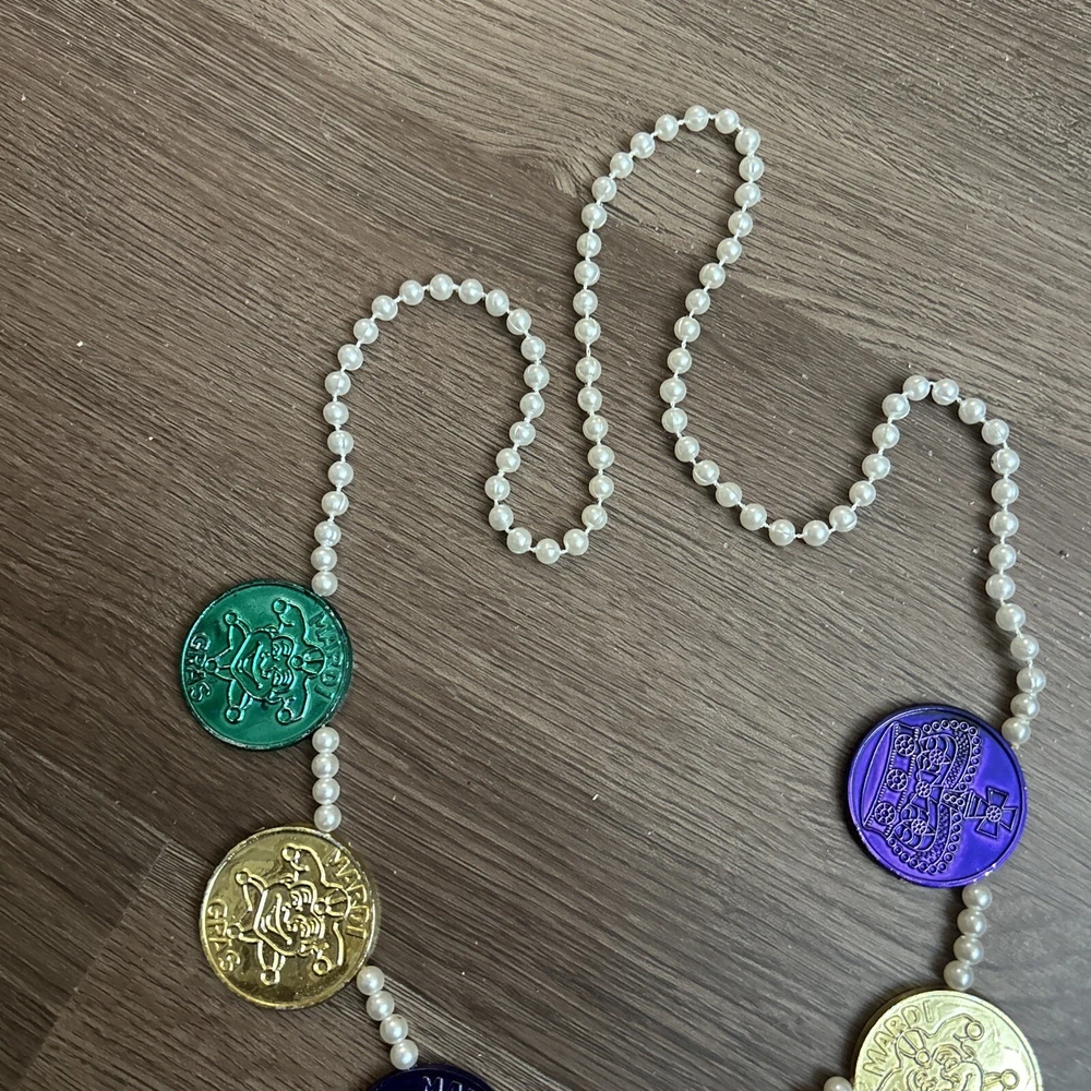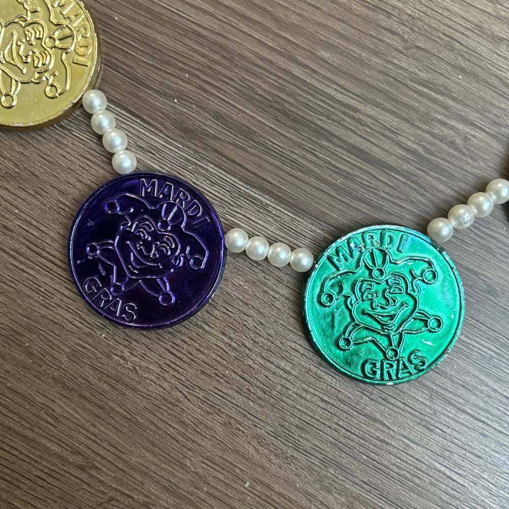 Vintage- around 1980- purchase in New Orleans at mardi gra. Approximately 16” necklace Coins- 1.5” diameter