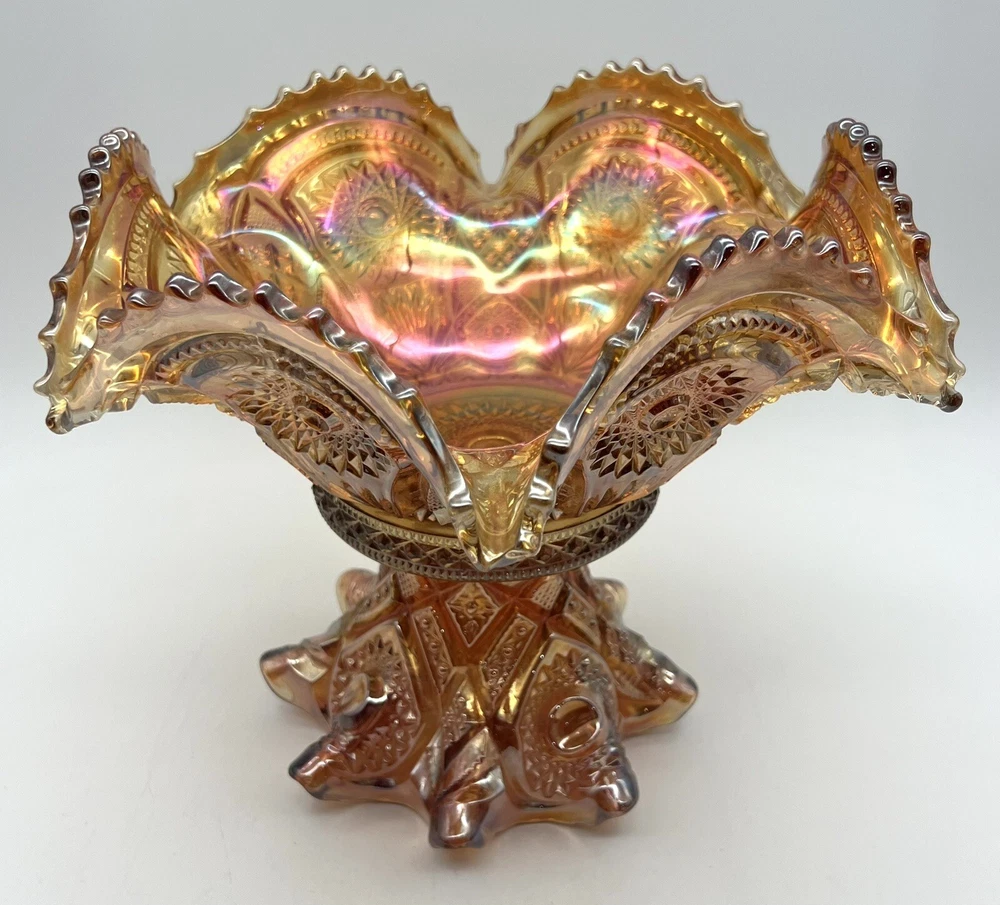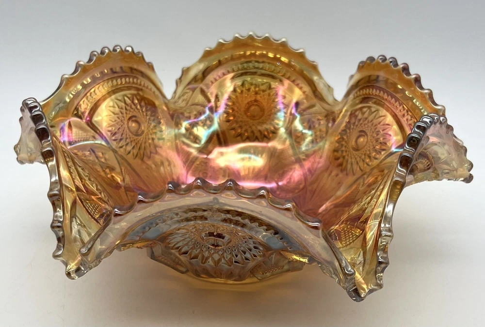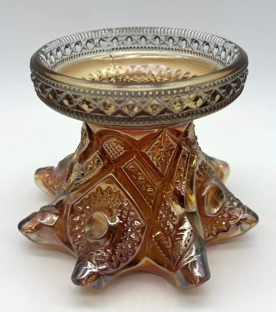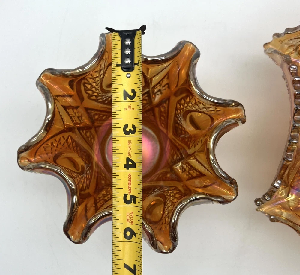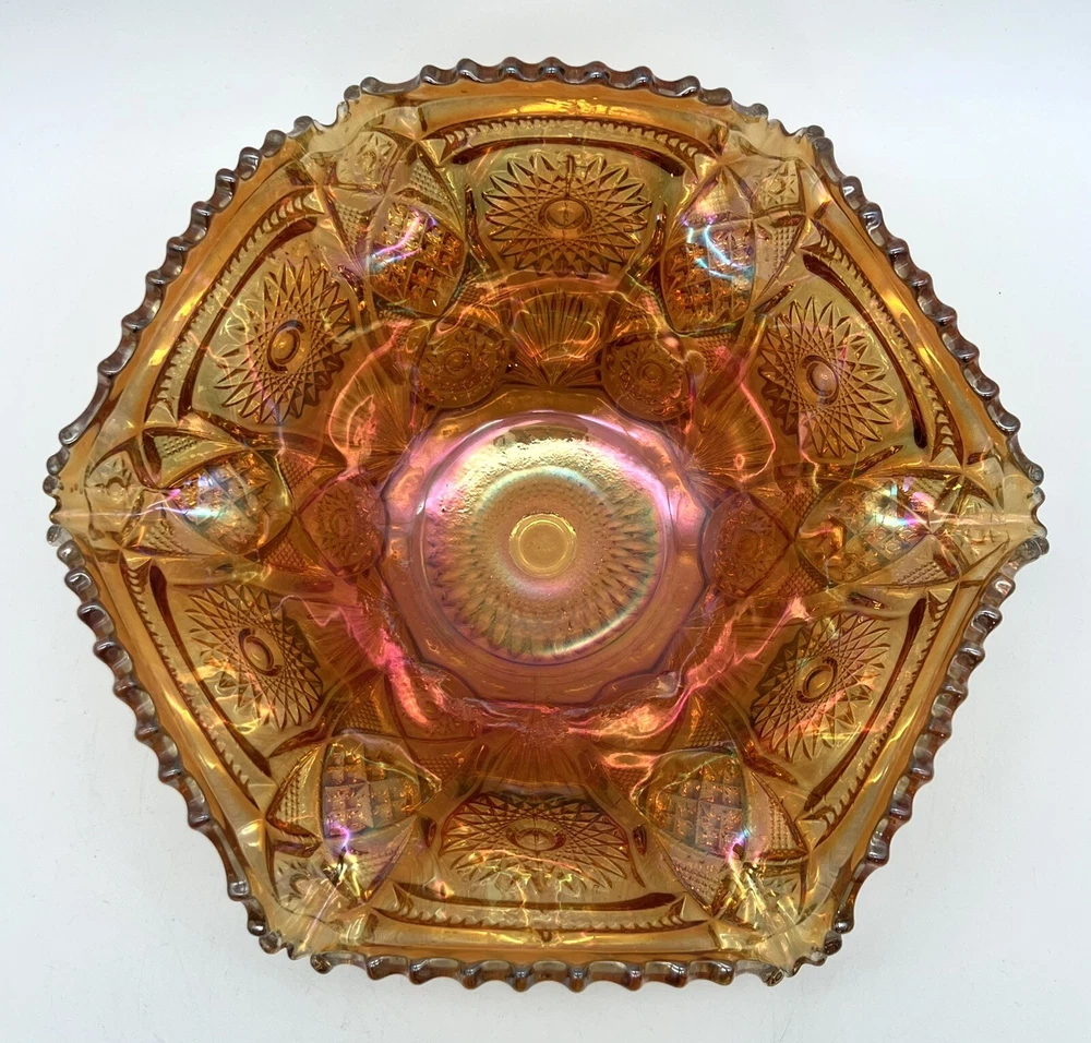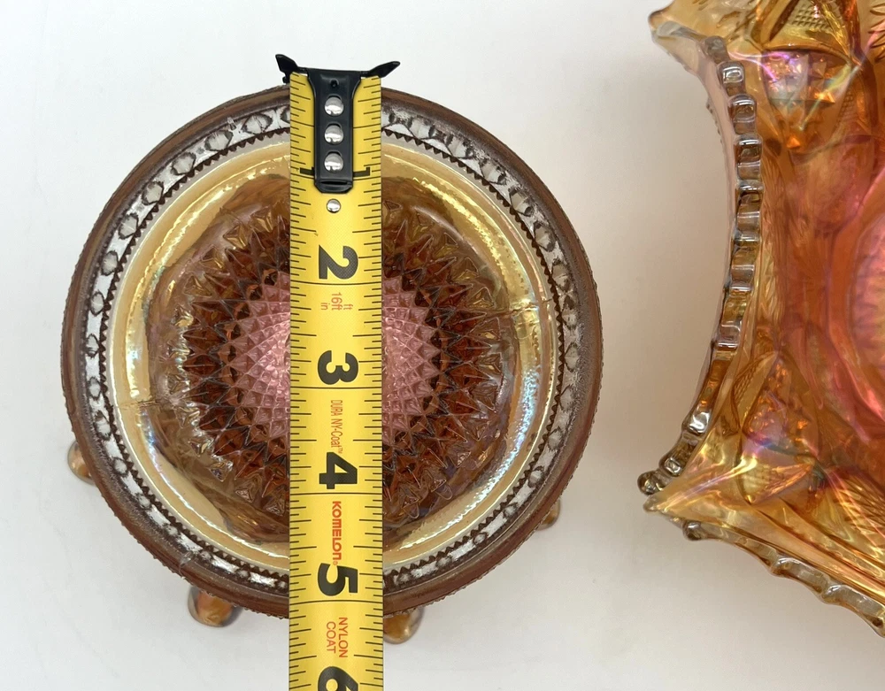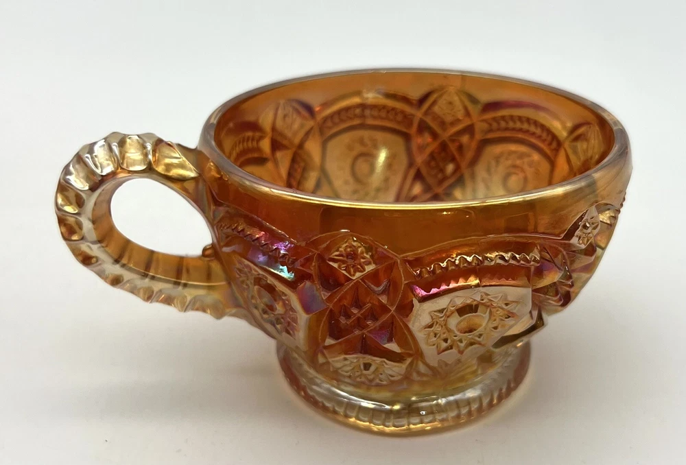 This vintage glassware set is a stunning addition to any collection. The marigold carnival design is beautifully crafted on eight pieces, including a punch bowl, six cups, and a base bowl. The set is perfect for all occasions and is sure to impress your guests. The glass material is durable and the set is designed to last for years. The round shape of the bowl and cups make them easy to hold and serve. The set is ideal for adults and is perfect for a service of six. Add this gorgeous marigold carnival glassware set to your home today. Please check all photos carefully before purchasing,photos are part of the description,what you see is what you get. 20