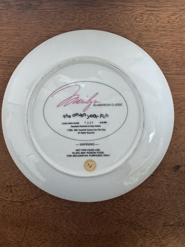 Vintage Marilyn Monroe collector plate from The Seven Year Itch 1955 film