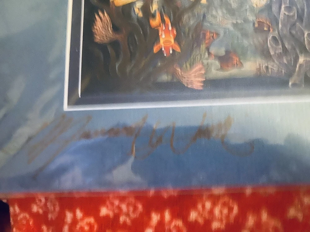 New and still sealed in cellophane sleeving. This is signed and matter. A beautiful piece. Amazing Dolphins. 14”x11”.
