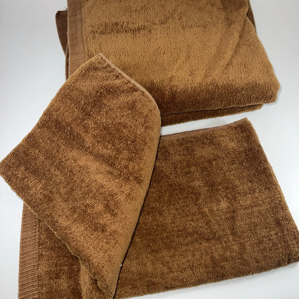 This vintage Marlborough Collection towel set is a charming addition to any bathroom. The set includes a washcloth, hand towel, and bath towel, all in a neutral brown color and made from a soft cotton blend material. The towels feature a ribbed design and are perfect for everyday use or as a collectible item.