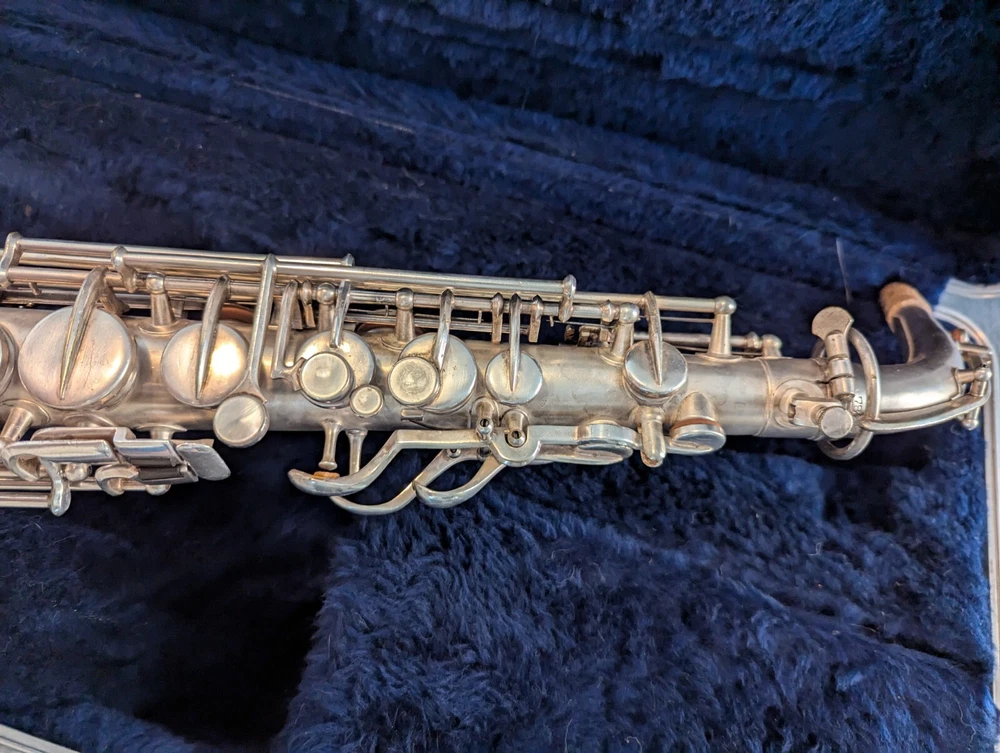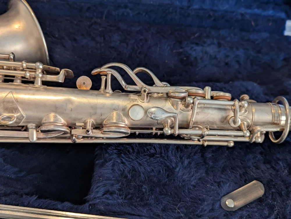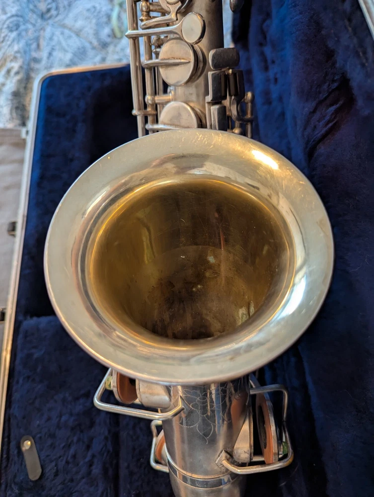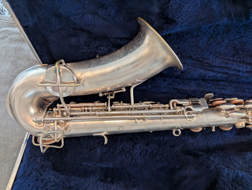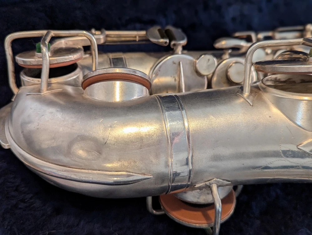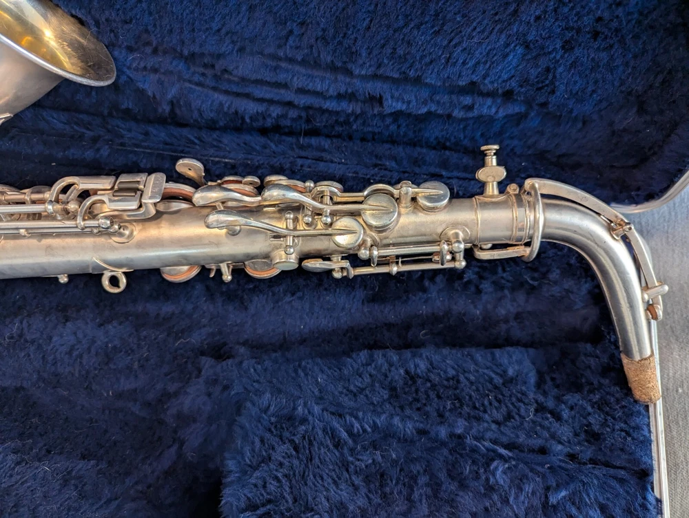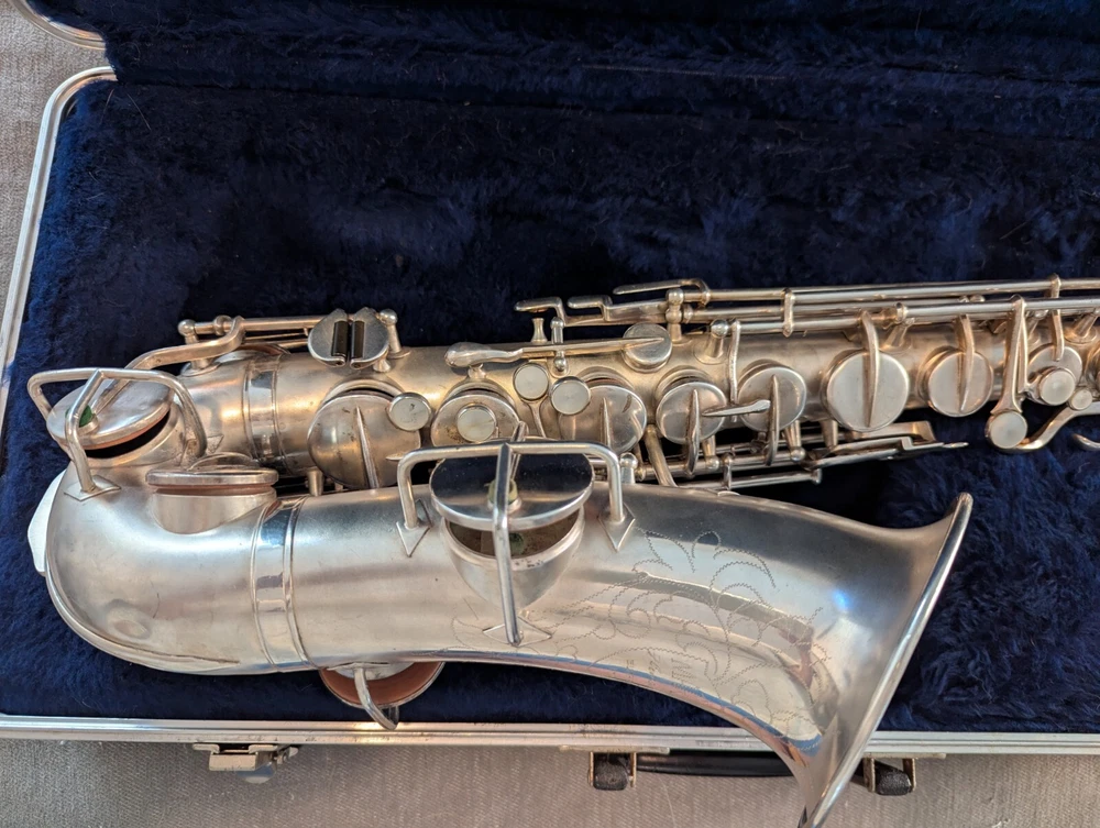 Here is a great vintage alto saxophone made by the folks at Martin. The serial number is 78262 placing its manufacture year at about 1927. Matching number on neck and body. The instrument is in overall good condition. The silver plate is in excellent condition, no real wear on touch points. Gold wash inside the bell. There's a bit of tarnish here and there which is typical of an instrument of this age. Otherwise, there are a few small dents & pings namely on the elbow and one on the back between the pinky G# key & side Bb tone hole. Some of the key guard feet & braces have been re-soldered. Everything works smoothly and quietly, (even the rollers roll), and the instrument plays just fine top to bottom. That said, it's always a good idea to get an instrument fine tuned after shipment. Felted & corked as needed. The pads are new with plastic resonators, replaced & fitted less than a year ago. It has nice sweet but smoky/dark Martin sound. The included hard-shell case is from Conn and is in great condition. The 2 latches work fine, soft clean fuzzy interior and no stank odor. The usual little accessory box. It also comes with a vintage string neck strap and a cute champagne cork neck plug which helps the sax sit snugly inside the case without sliding around. No mouthpiece, cap or ligature is included. This auction is for the sax, neck strap, & case - just what you see in the photos. No other accessories are included. I have made every attempt to describe this item as accurately as possible, but feel free to ask any other questions prior to bidding. Please see photos as part of the description, I am happy to provide more upon request. Shipping is via FedEx Ground\Home or UPS Ground and cost will vary depending on location. Local pickup in NYC is okay too. Sold as-is. No returns please.