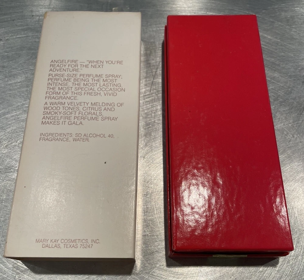 Vintage Mary Kay ANGELFIRE Eau de Parfum .30 Fl. Oz. NIB Purse Perfume Spray. Red lacquer spray bottle in sweet festive red box with gold bow. Angelfire- “When you’re ready for the next adventure.”