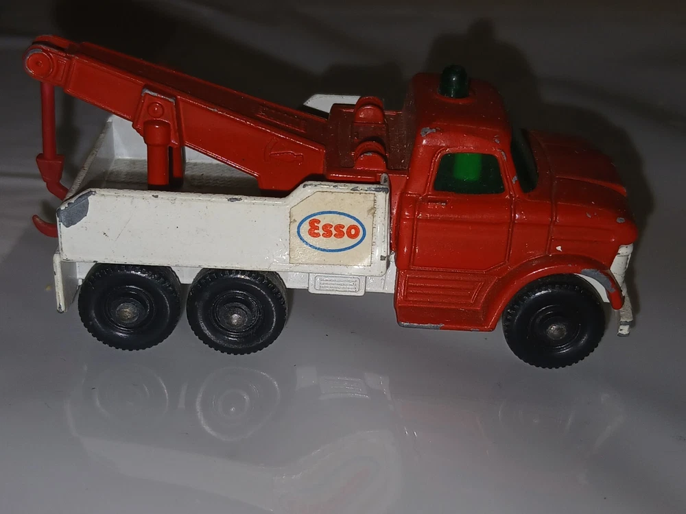 Please look at the pictures. Truck has no box. The product is a Vintage Matchbox No 71 Ford Heavy Wreck Truck Esso by Lesney England from the Hot Wheels Redlines series. It is a diecast toy truck featuring a Ford design, part of the Hot Wheels brand collection.
