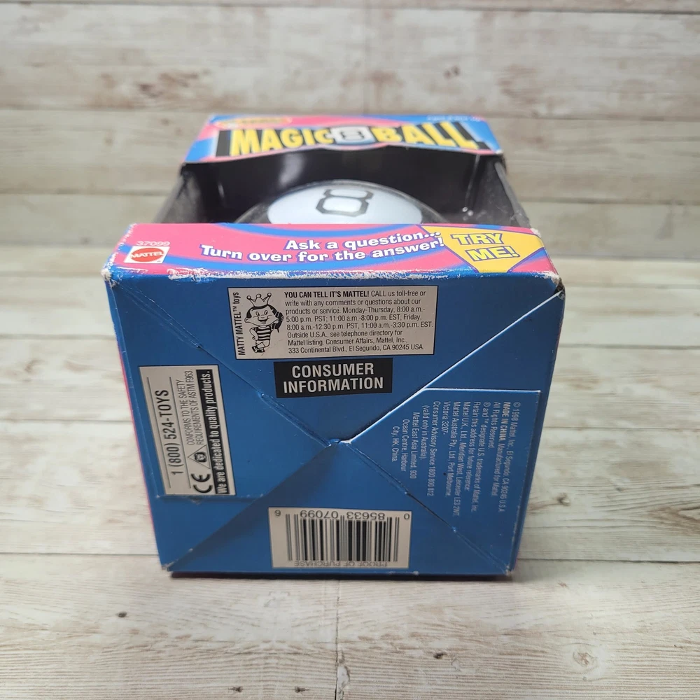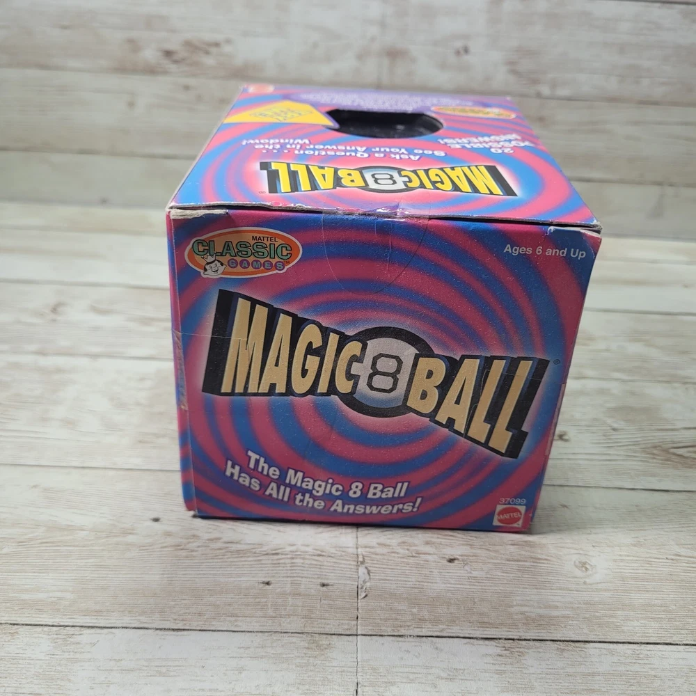 Magic 8 Ball is new in package, box has some damage on the corners and borders, please see pictures for condition before you buy
