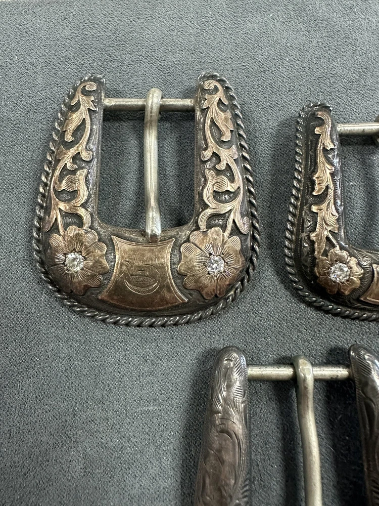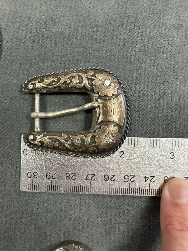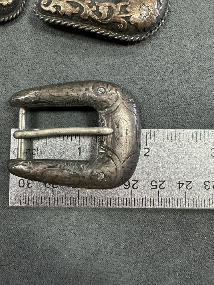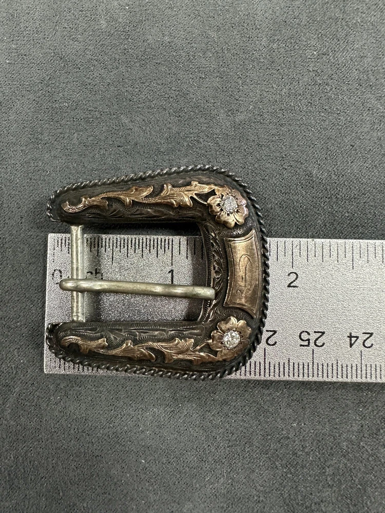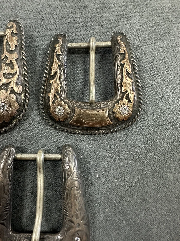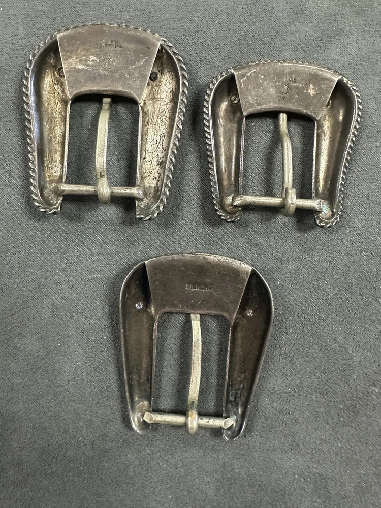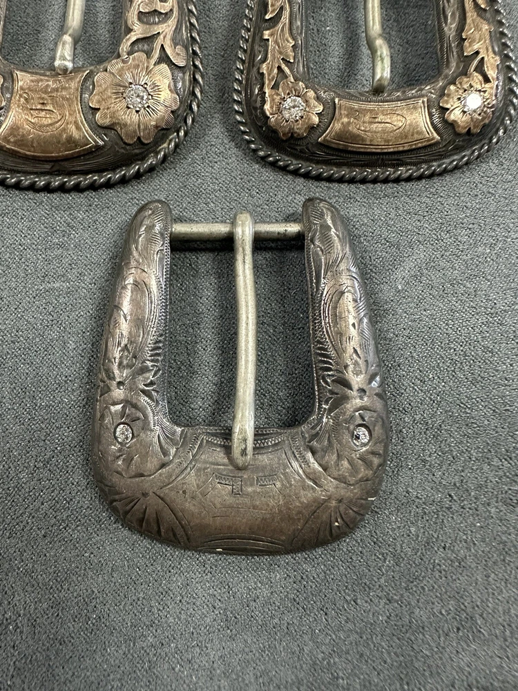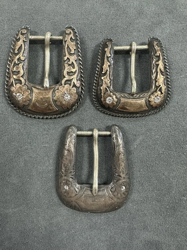 NICE VINTAGE LOT OF BUCKLES STERLING SILVER 10K Diamonds 2 are branded 1 is not Bid to win 64.3G for all 3
