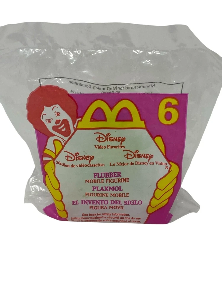 This vintage McDonald's Disney Video Favorites Flubber Happy Meal Mobile Toy Figure is a must-have for any Disney or fast food memorabilia collector. Made in 1998, this figure features the beloved character Flubber and is suitable for ages 4 and up. The toy is great for displaying in its original packaging. The figure is branded with the Disney logo and is a great addition to any Disney or McDonald's collection. Exact item pictured is what you will receive.