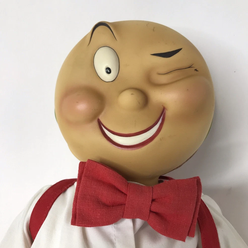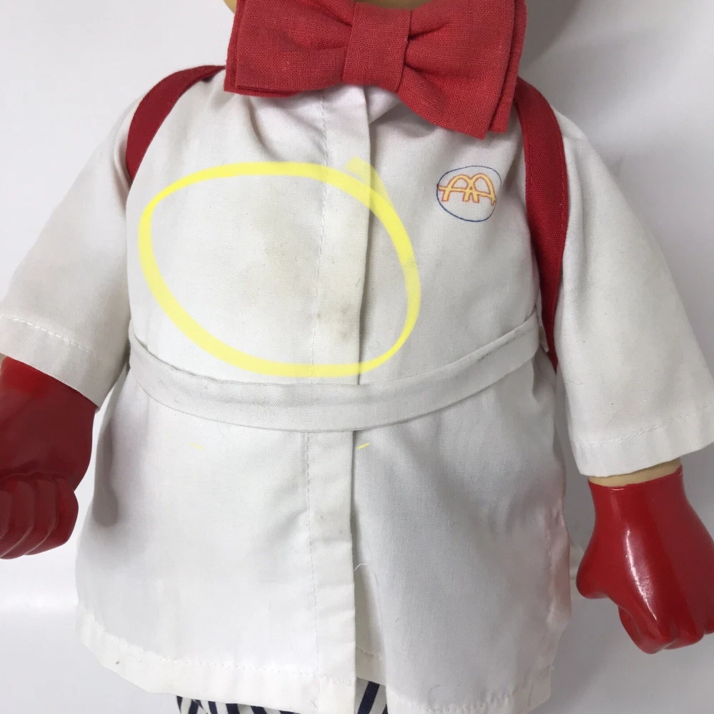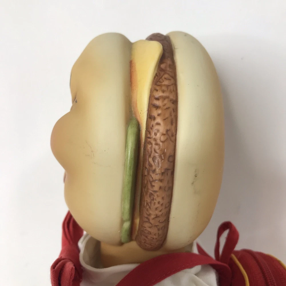 Vintage Mcdonalds “Speedy” Porcelain Doll Memorabilia 40th Anniversary 1950 13”. THERE ARE A COUPLE OF STAINS ON WHOTE COAT AS SHOWN IN PHOTOS. FACE SHOWS SOME SPOTS MISSING ORIGINAL SIGN /STAND HAS ORIGINAL BACKPACK Speedee” 14” Porcelain Doll produced by the Ashton-Drake Galleries. Created by artist Jim Licaretz and officially authorized by McDonald’s. This special doll is the first issue in the McDonald’s Anniversary Collection in honor of the 40th anniversary of the opening of the first McDonald’s. This edition of “Speedee” ended forever on Dec. 31, 1996. F-1