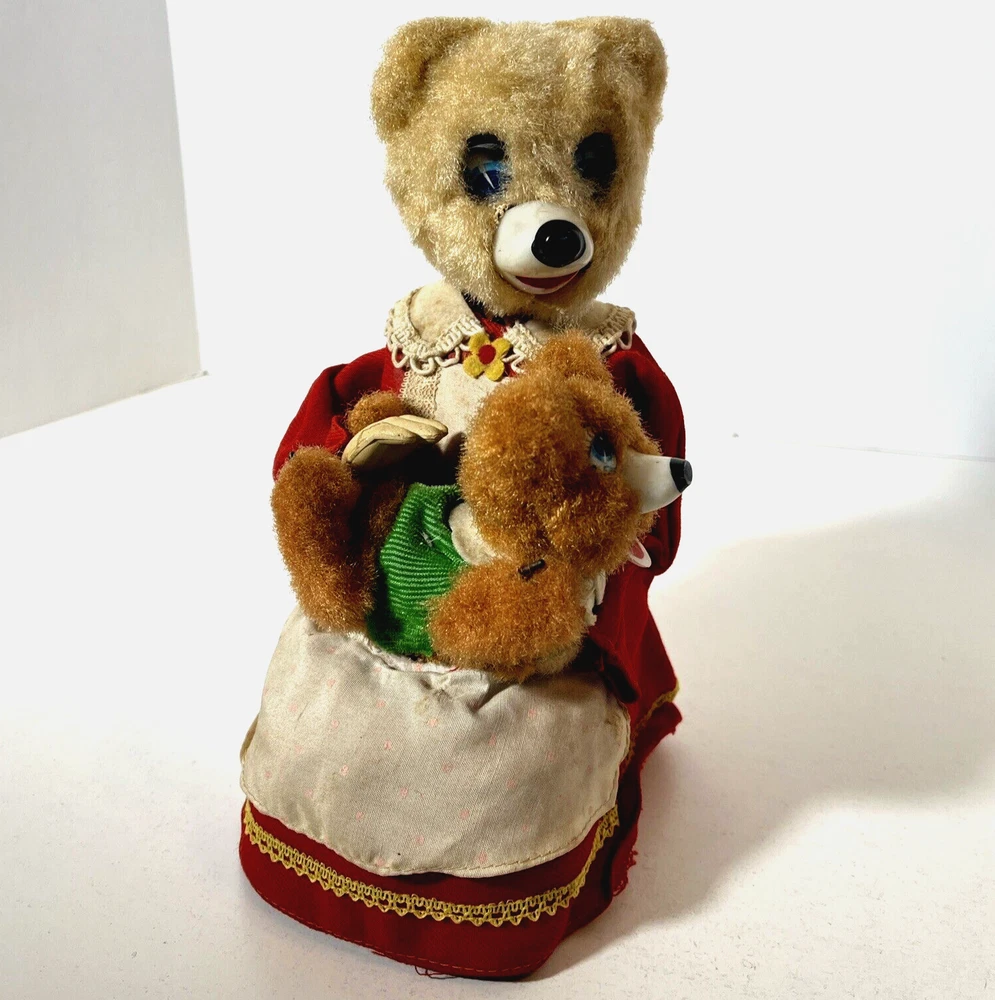 Vintage tin litho battery operated toy, mama bear spanking baby bear. IT IS NON WORKING