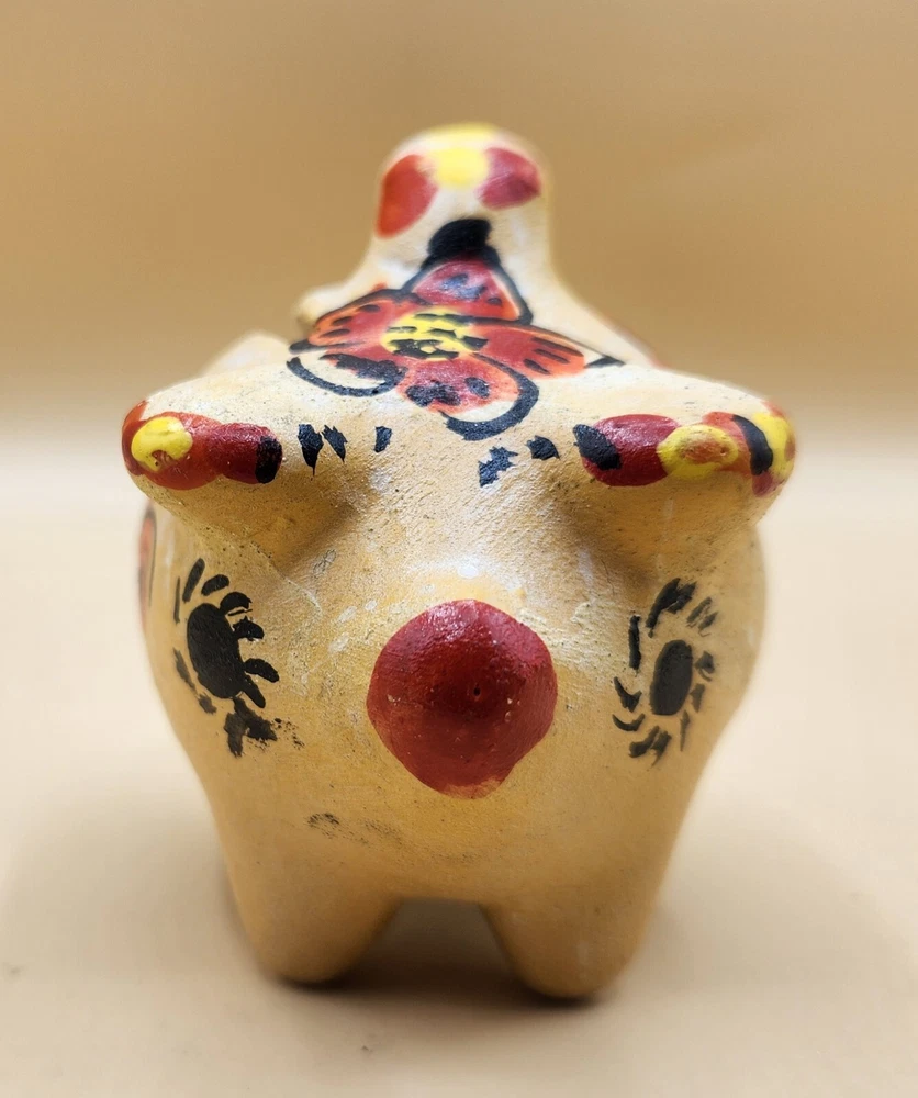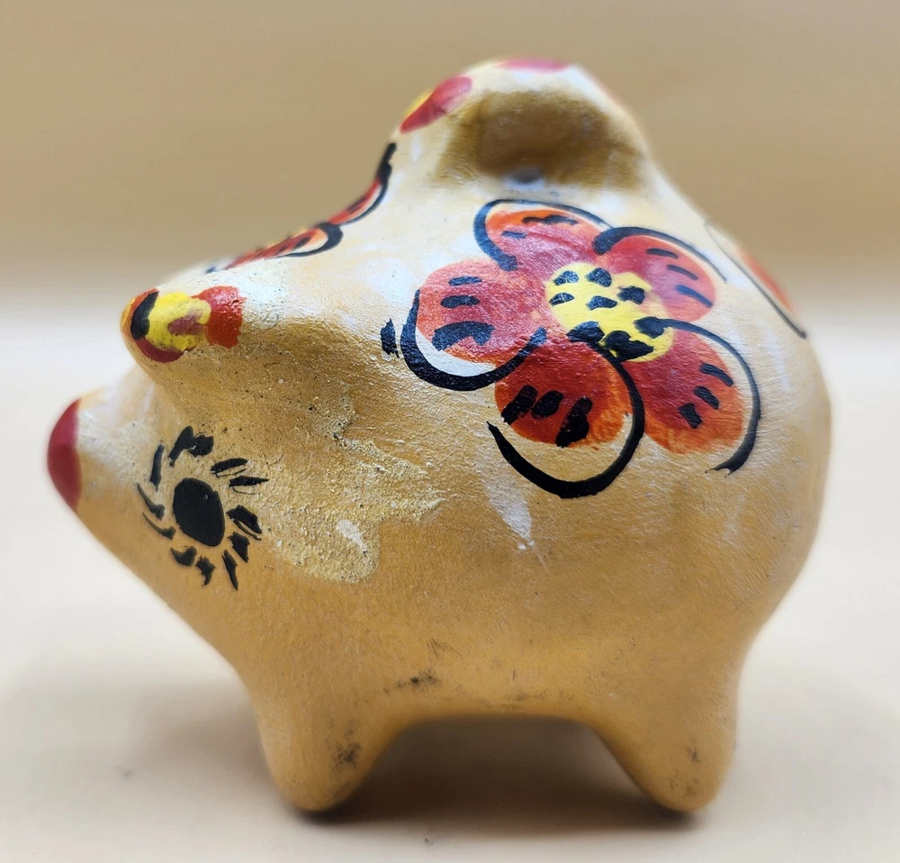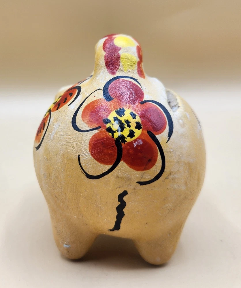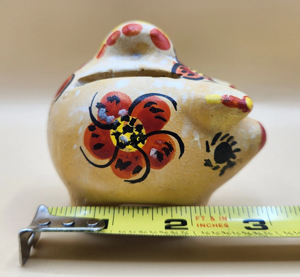 Vintage Mexican Ceramic Pig Piggy Bank With Handle Hand Painted 3"x2"x3" No Plug - Bank needs to break to open! PRE-OWNED CONDITION SMOKE FREE HOME FREE SHIPPING