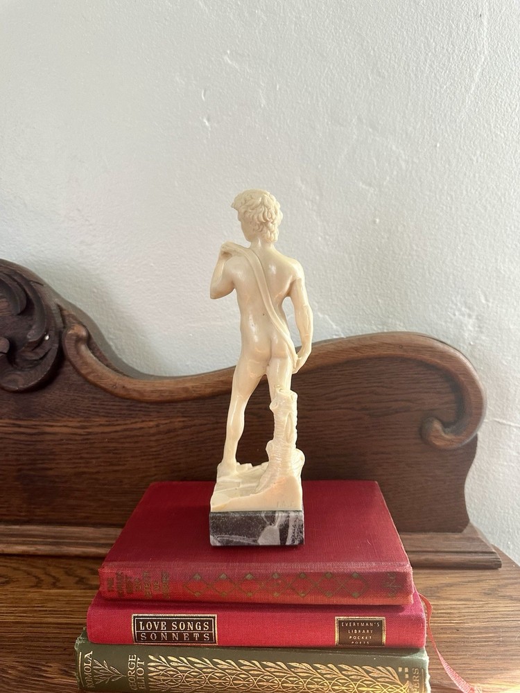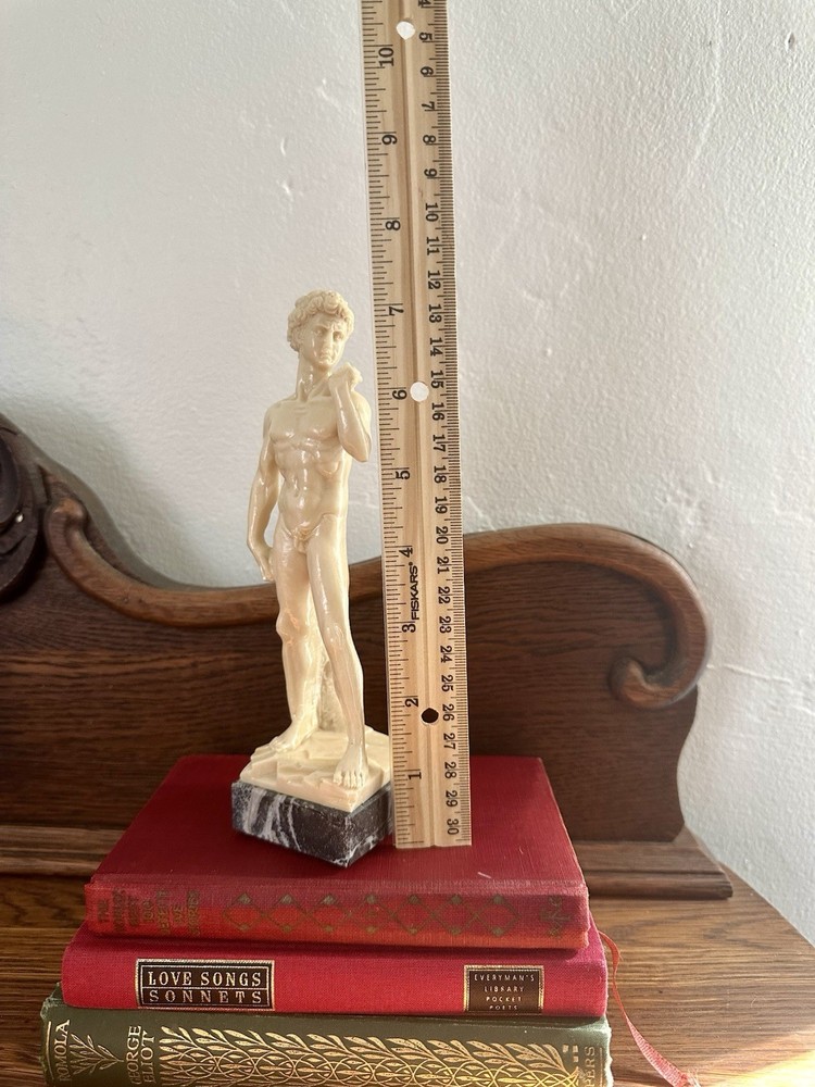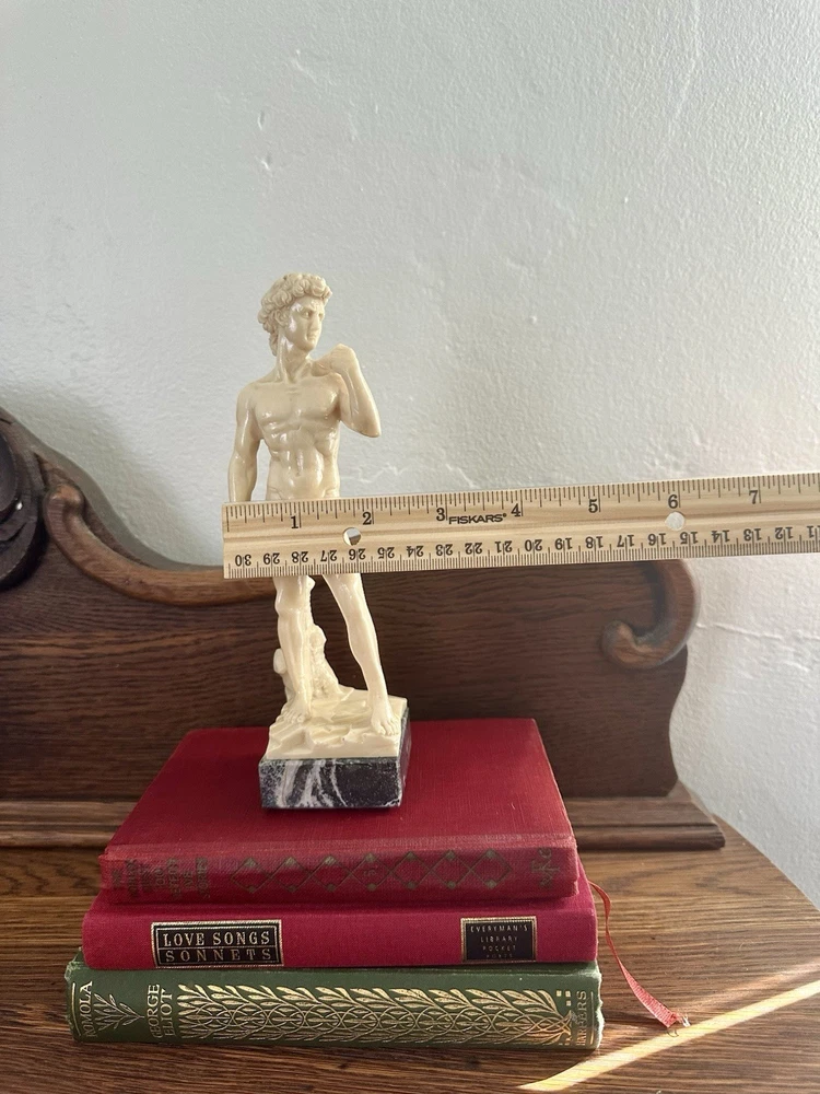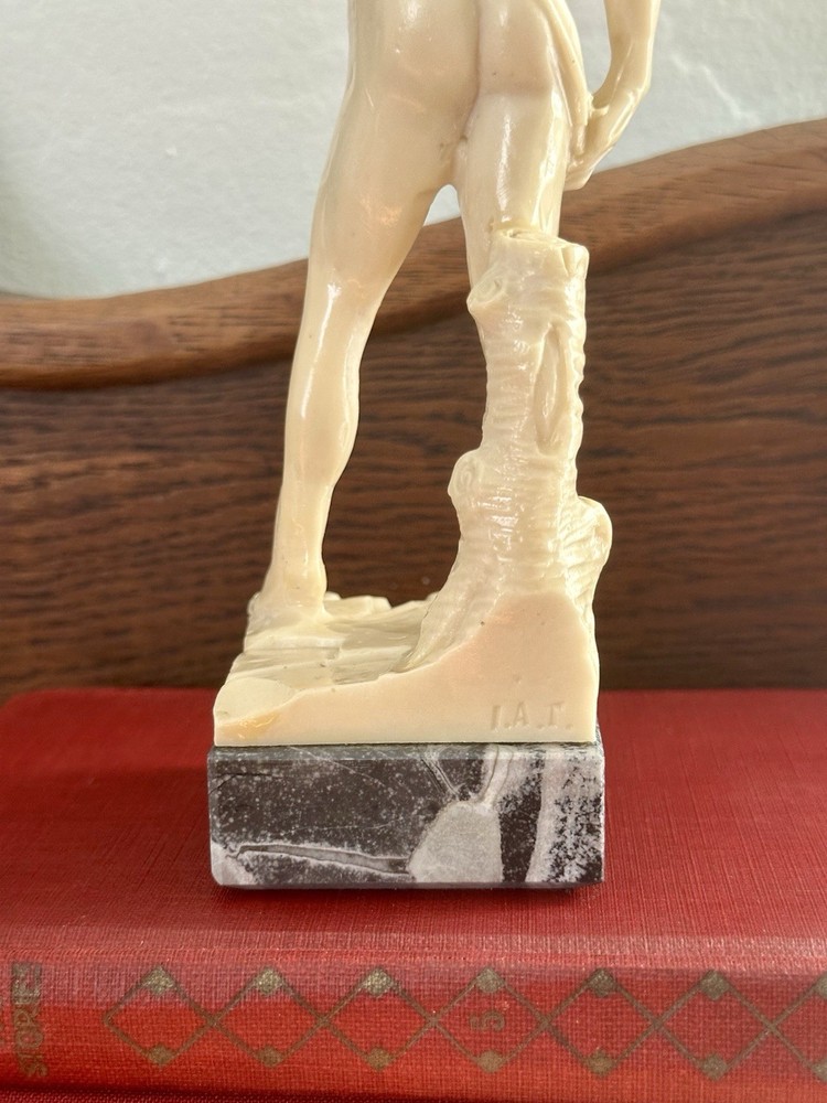 Resin sculpture of David Signed 7in tall Please keep in mind all items are in great but vintage condition which can include a scratch, scuff, spot etc. If you have questions about a specific item condition, please let me know.