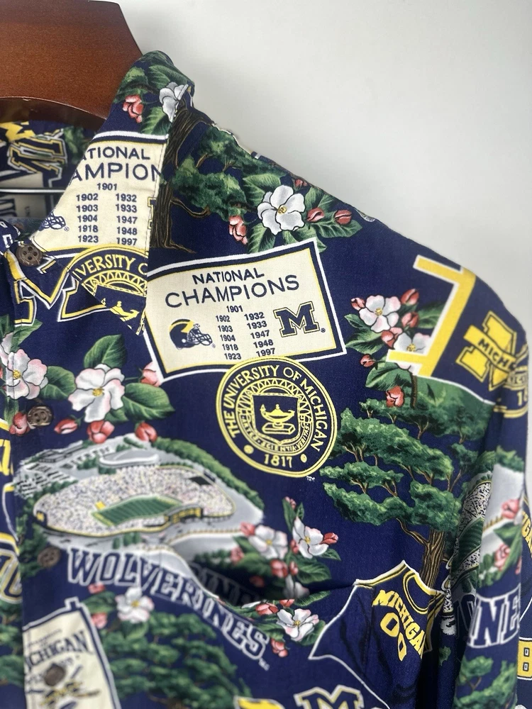 Vintage Reyn Spooner Hawaiian Shirt Mens XL Michigan Wolverines Button Up Adult. Condition is Pre-owned. Shipped with USPS Ground Advantage.