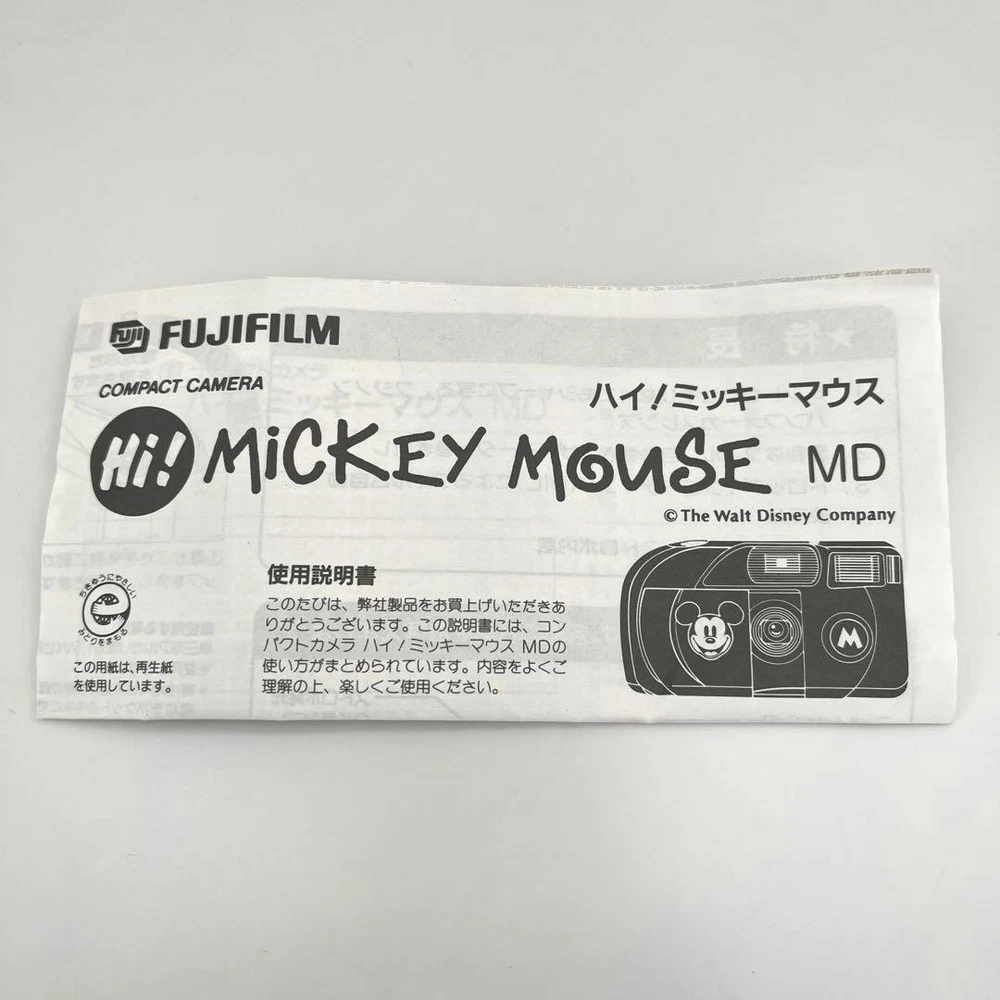 This adorable Fujifilm compact camera is such a fun find! The Mickey Mouse design adds a playful touch, and it works perfectly—great for capturing nostalgic moments. The condition is nearly flawless, with no scratches, and it even comes with the original manual. A must-have for Disney fans or vintage camera collectors!