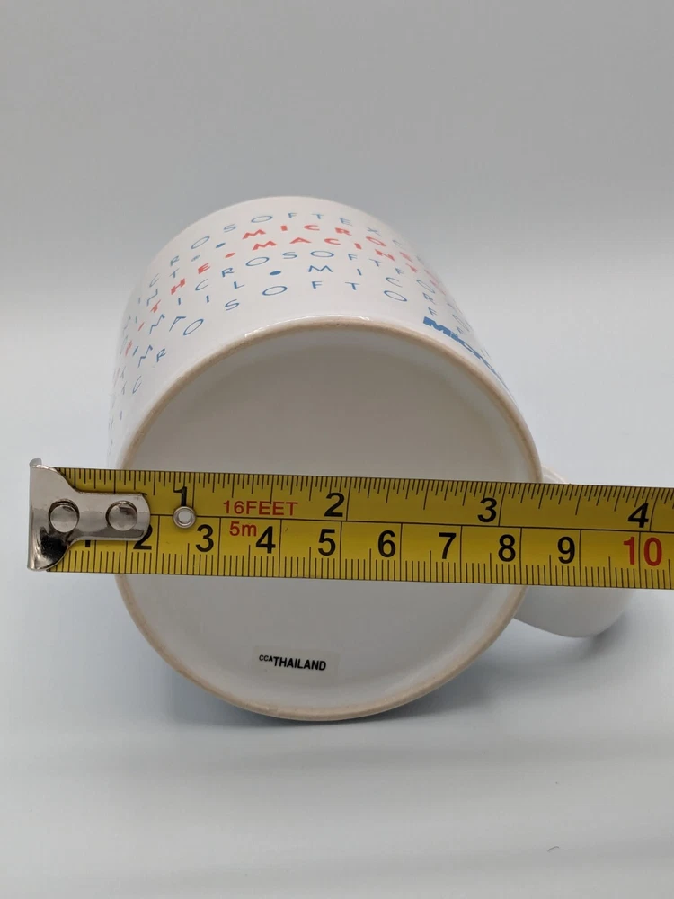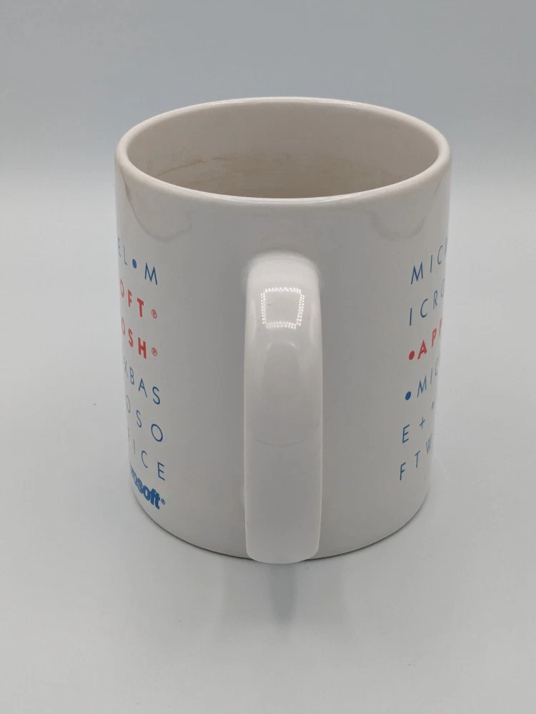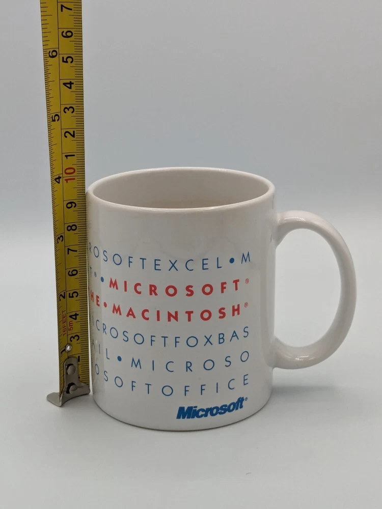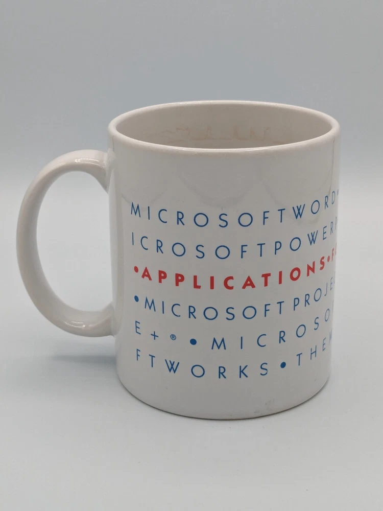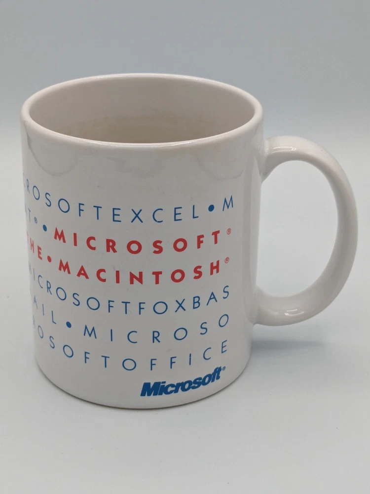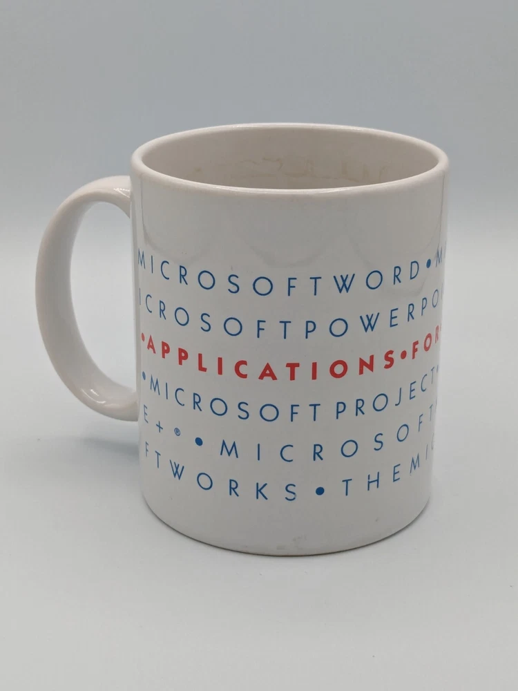 Step back into the early 1990s with this nostalgic Vintage Microsoft Applications coffee mug. Standing 3.75" tall, it showcases the classic blue Microsoft logo and the names of legendary applications like Excel, Word, and PowerPoint. While pre-owned and showing some interior staining due to age, this mug remains a must-have collectible for tech enthusiasts and retro fans alike. A perfect mix of functionality and history, it's ideal for sipping coffee or adding a vintage tech touch to your collection! We ship within one business day! This item comes from a smoke-free and dog-free home. Our items are carefully packed to guarantee their safe arrival to you.