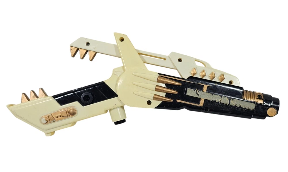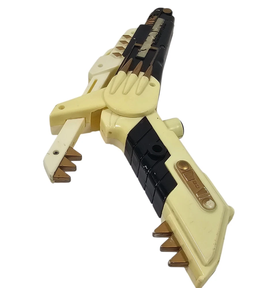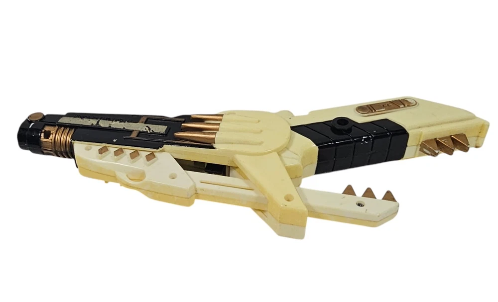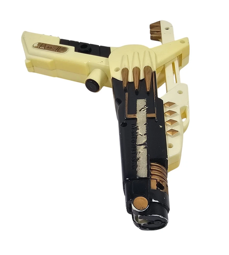 Vintage Mighty Morphin Power Rangers White Blade Blaster Squirt Gun 1993. This has wear and does not work. It has wear to the finish and the stickers are mostly worn off. The gun is marked: TM and 1993 saban. This gun measures almost 8 ½ inches across. Box246 #5.