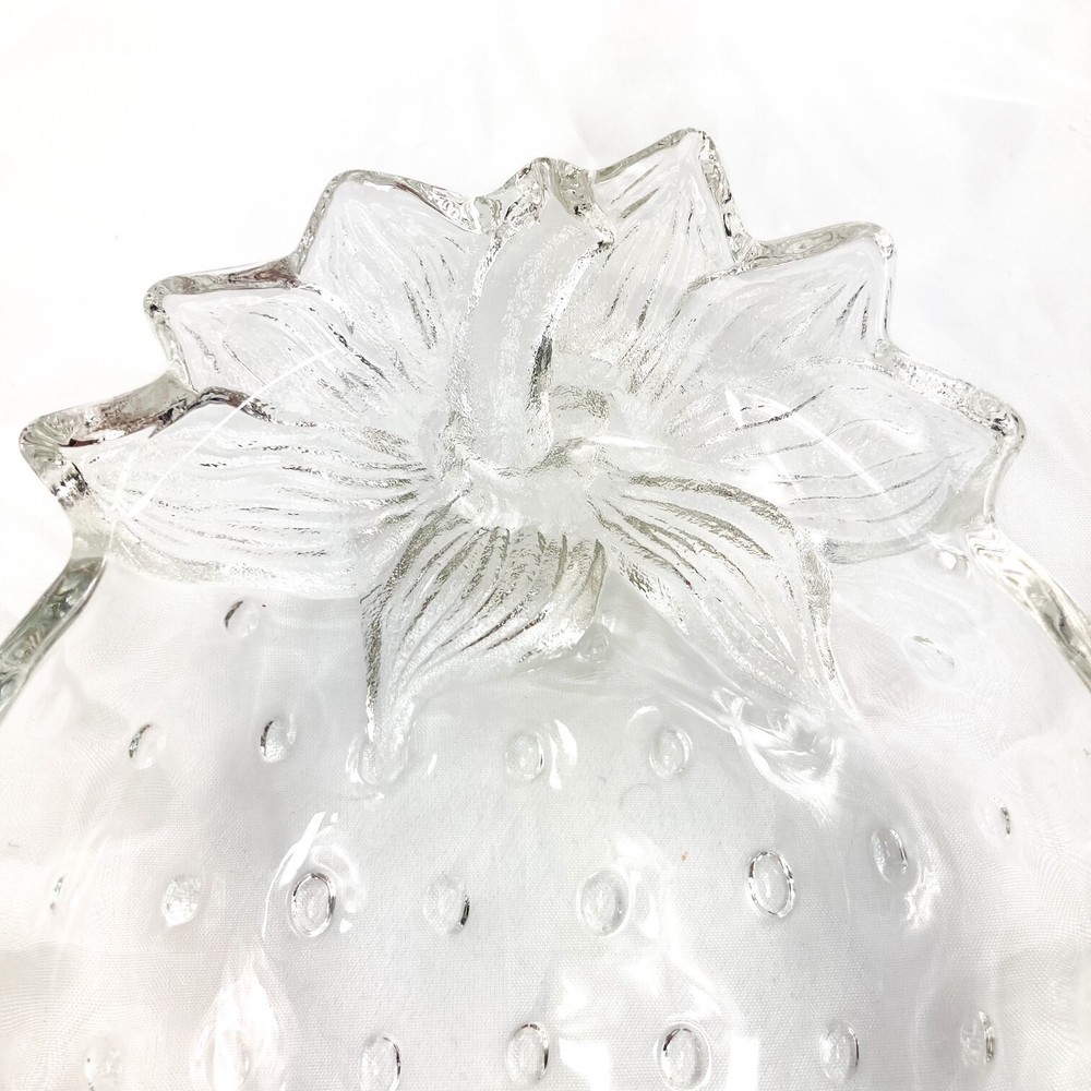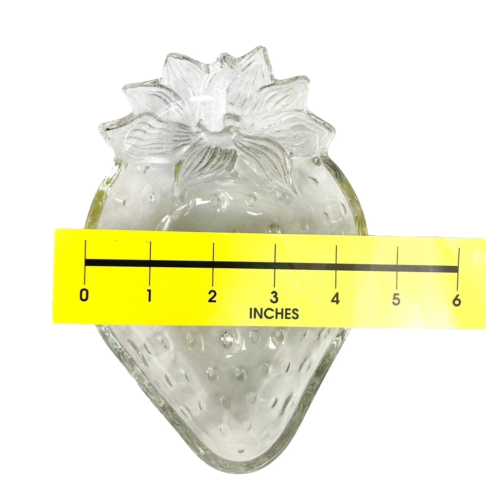 Crafted by Studio Nova, this vintage Mikasa Strawberry Shaped Dish is a delightful addition to any glassware collection. The textured glass, featuring a lustrous strawberry design, brings a touch of whimsy and nostalgia to your home. Ideal for housing candies, trinkets, or treats, this dish measures 4.5 inches in width and 7 inches in length. With its clear color, it easily complements any decor while showcasing its single compartment for organized placement of your favorite small items.