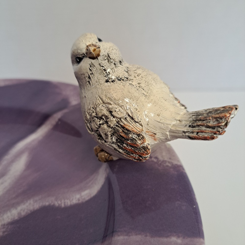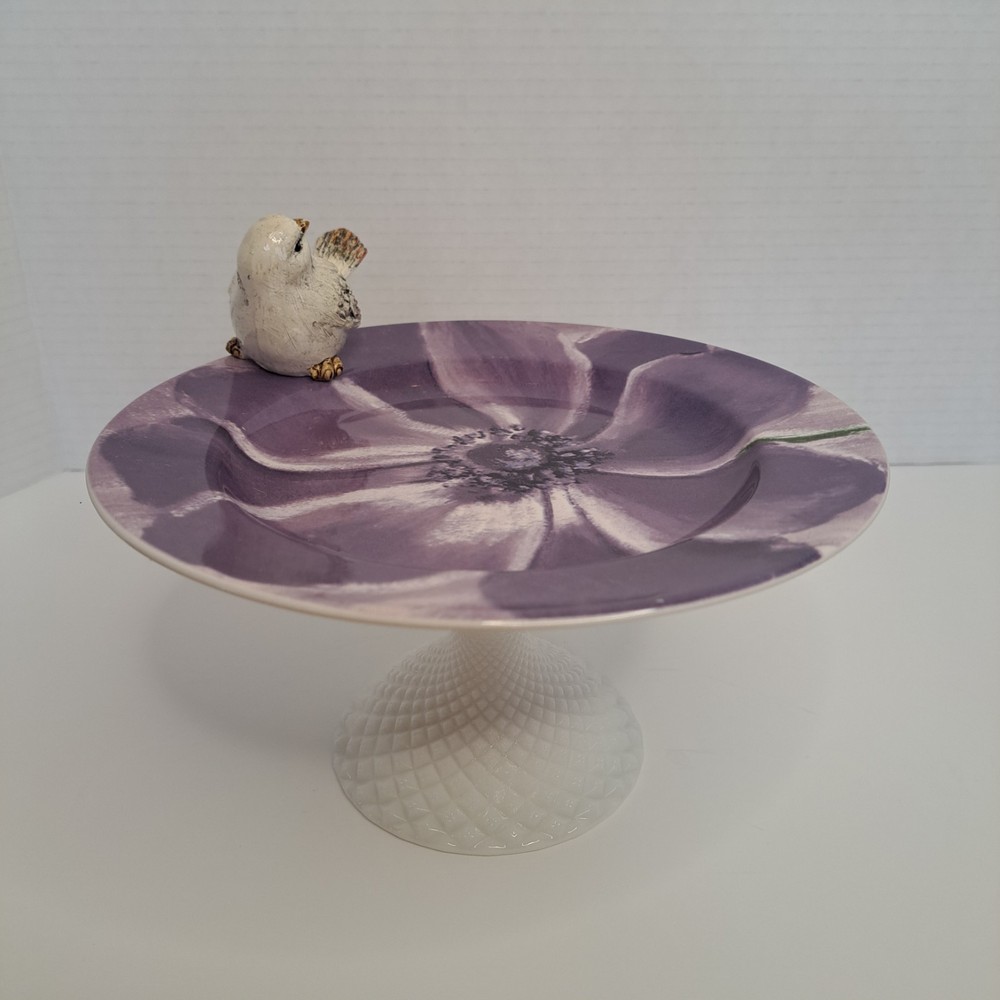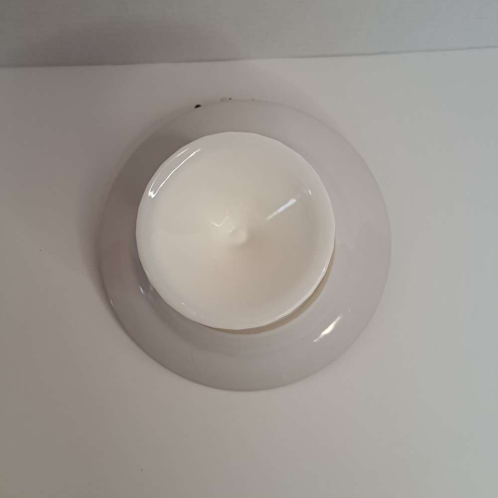 This Milk Glass Pedestal Decorative Bird Bath Plate is a unique and stylish collector's item. The round shape, multicolor design, and decorative bird theme make it a charming addition to any collection. Standing at 8 inches in diameter and 4.25 inches high, this milk glass plate is both beautiful and functional as a bird bath or decorative piece. Possibly a Folk Art piece. There is a very small chip on plate under the bird see photo#5. See photos for additional details and exact condition. You can make an offer, as I reply to all reasonable offers and treat all my buyers fairly.