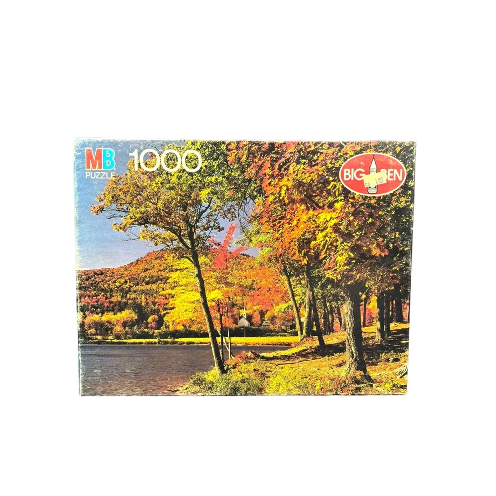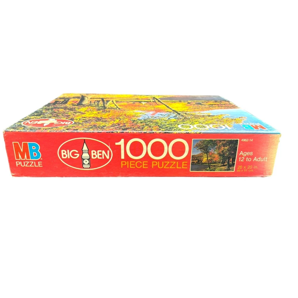 Vintage Milton Bradley Big Ben 1000 Piece Puzzle Eaton New Hampshire -1982 New Sealed box. ages 12 - Adult 26x20 in Box does have some fading and wear but it is still factory sealed multiple shipping options available