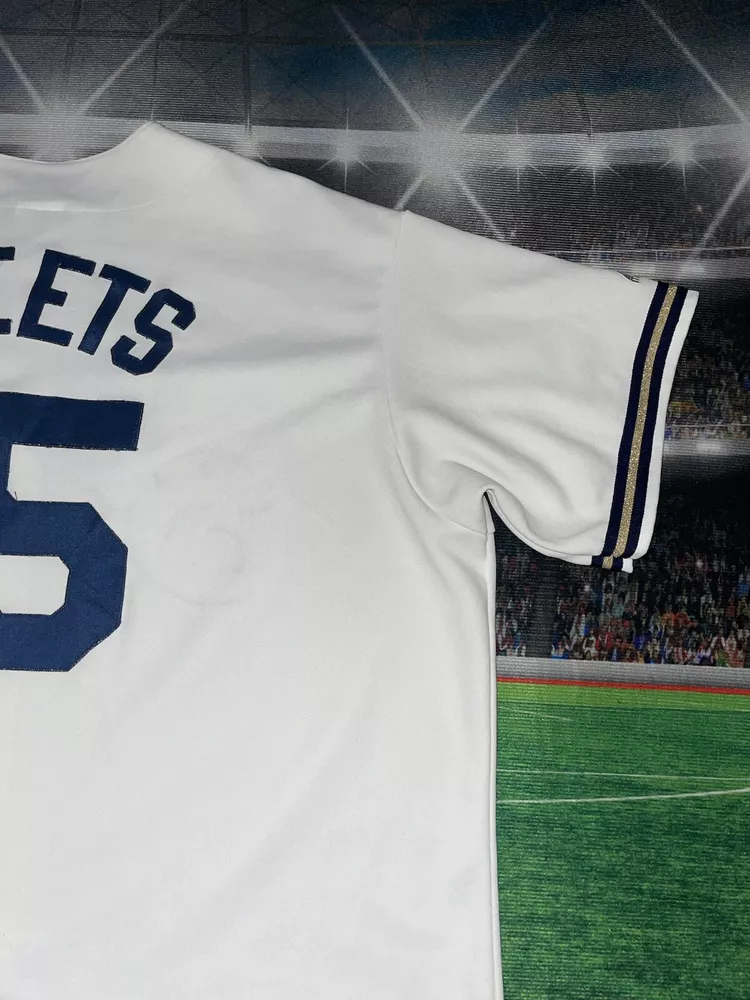 Show your love for the Milwaukee Brewers with this vintage Ben Sheets #15 jersey from Majestic. This officially licensed piece of fan apparel is perfect for any baseball enthusiast, featuring the iconic team colors of white and blue. Made in the United States, this 2XL jersey is stitched with precision and designed for men. Represent your favorite league, the Major League (MLB), during regular season games with this high-quality jersey. It's a must-have for any true fan of the sport. Add this product to your collection of baseball memorabilia and feel proud wearing the majestic design. Note: lite spots