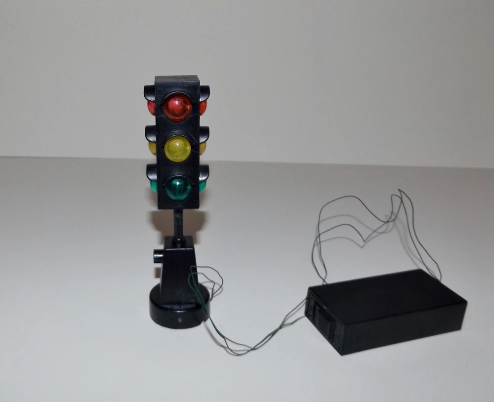 Vintage Miniature Railroad Crossing Light Christmas Village K. Adler Working Vintage pre-owned plastic battery operated miniature Railroad Crossing Sign Light, Santa's World, Kurt S. Adler Inc., Taiwan. For Christmas village, model railroads, and more. Measures approximately 5" high x 1 1/4" round base. Testing - working - flashes between red, yellow and green. Takes 2 AA batteries (not included). Selling as is. Use pictures as part of description.