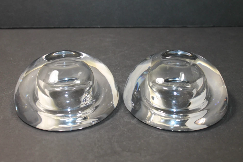 Preowned Clear Glass Round Block Tea Light Candle Holder Set Of 2. They are in very good condition, no chips or cracks. They are clean. Measures: 1.6" H, 4" DIA rim. Please see photos for more details. Please note that the item is vintage and may show signs of wear. We have done our best to honestly and accurately describe and photograph the item, including possible flaws. What you see are the actual photos of the item being sold. If you have any questions regarding the item, please ask! We DO NOT SELL outside United States. SHIPPING The item will be shipped within three business days after receipt of payment. We ship via USPS to any location within the 48 continental United States, NO INTERNATIONAL SHIPPING. Shipping is calculated by EBAY based on the weight and size of the item plus packaging. We can combine shipping in case you buy multiple items that can be safely shipped together. Thanks for looking!