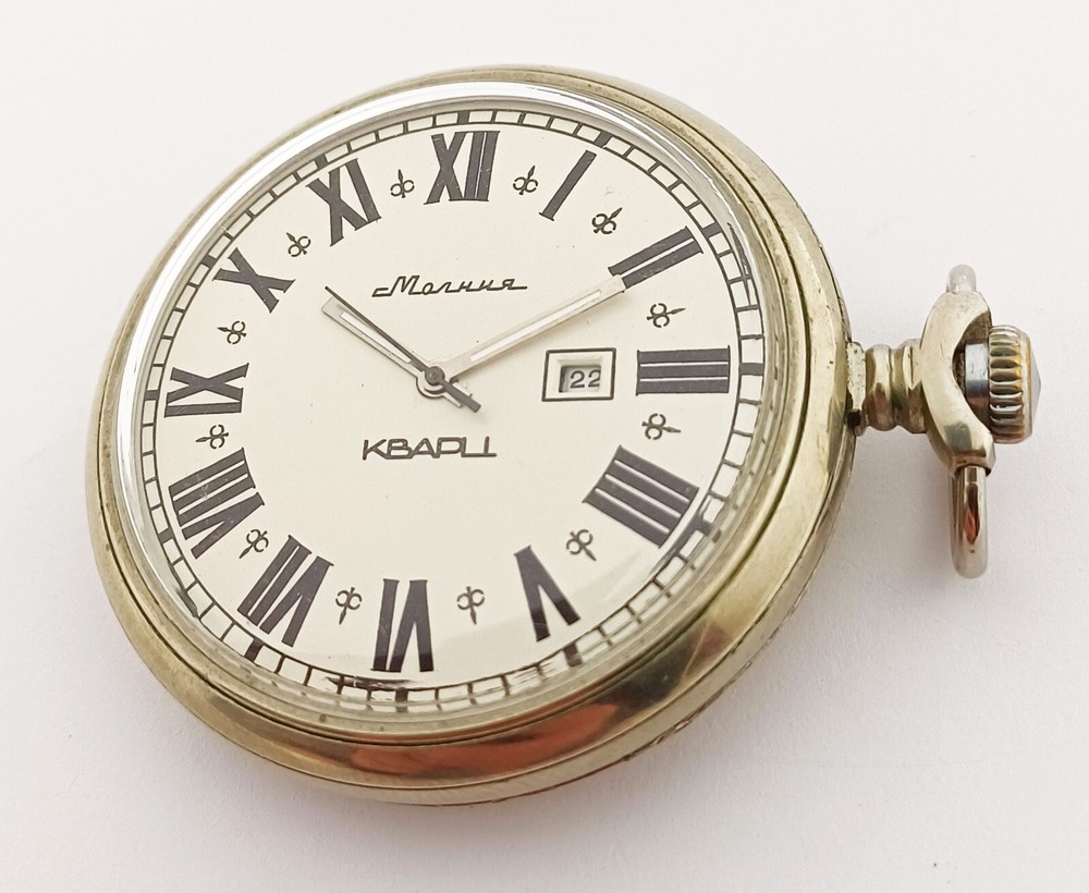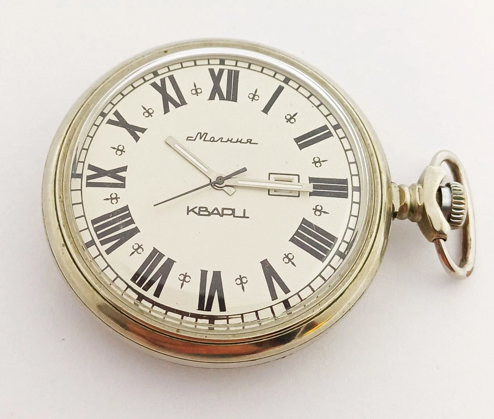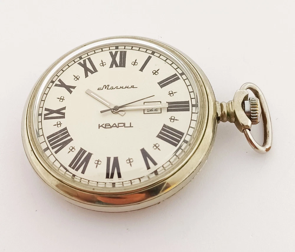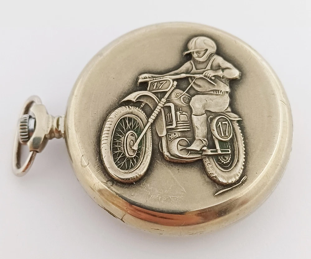 Molnija Motorcyclist Molnia Vintage Soviet Russian Quartz Pocket watch Case size (without crown) - 50 mm Dial size - 42 mm Case thickness - 15 mm 100% mechanical watch Vintage Soviet watches are highly sought after by collectors and enthusiasts due to their historical significance and unique designs. Collecting vintage Soviet watches can be a fascinating hobby, allowing you to own a piece of history while appreciating the craftsmanship and design of these timepieces. The watch has been serviced by a watchmaker and is in excellent working condition. Shipping Items are shipped worldwide by airmail with a tracking number. Delivery period US, Europe - 10-15 business days Australia, New Zealand - 20-30 business days Other countries - 10-20 business days