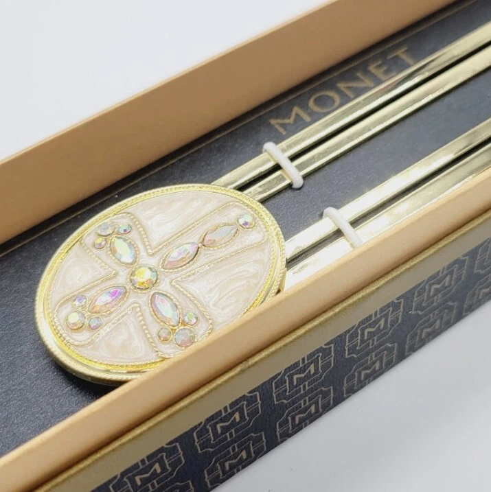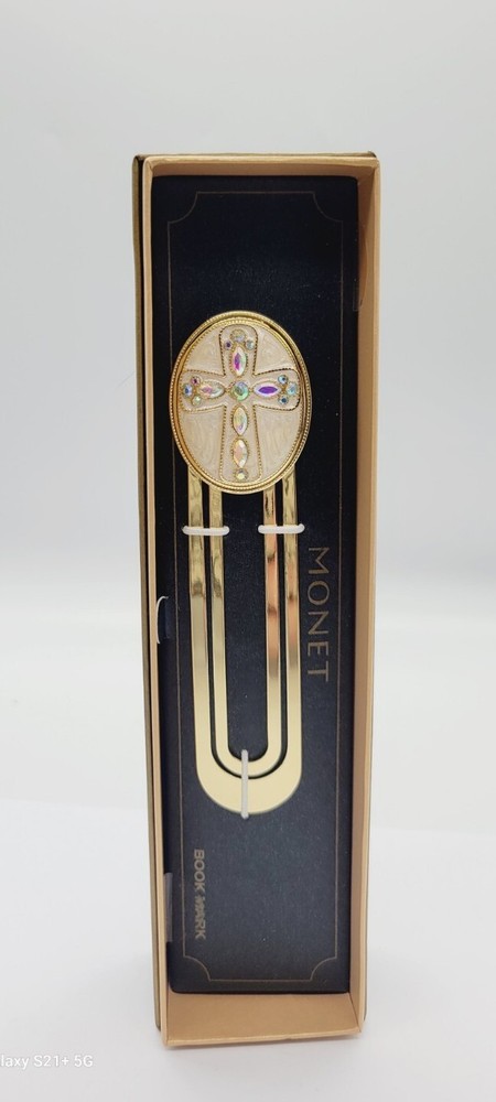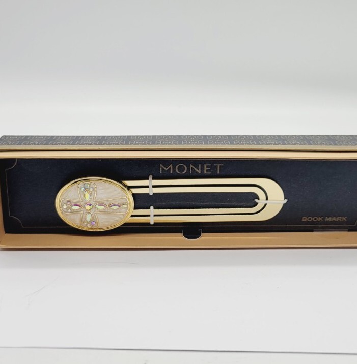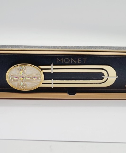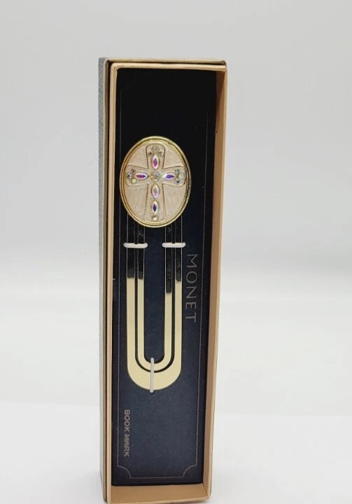 HomeVintage Monet Cross Enamel Gold Tone Crystals Paperclip Bookmark NIB