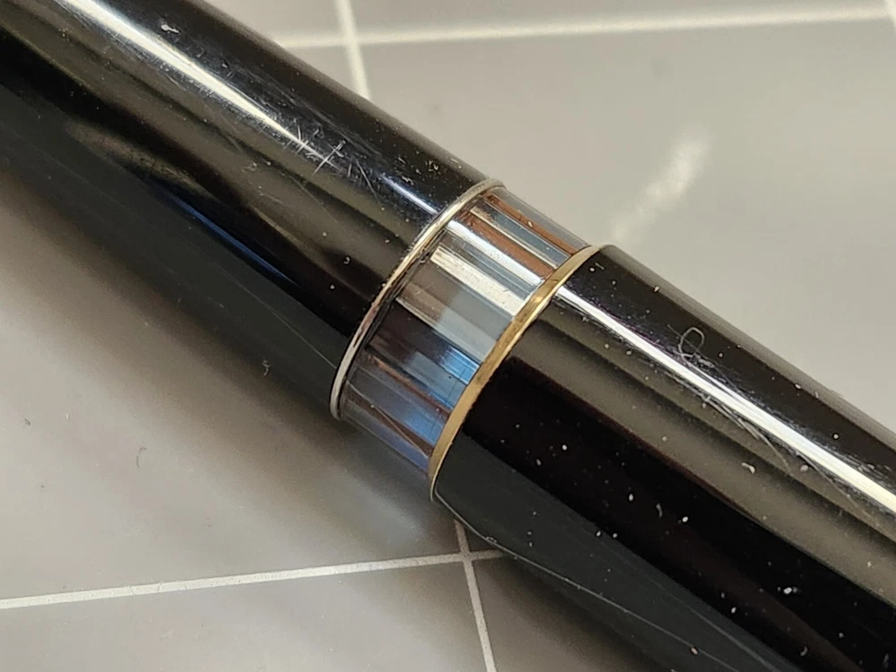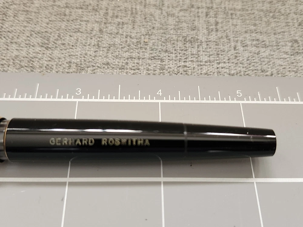 These pens came from a collection and have not been tested or cleaned by me. Pens are sold as found from an estate. Please look at photos and or ask questions. This means the pen has not been tested or opened and came from an estate. I DO NOT KNOW WHAT COLOR INK IS IN THIS PEN Overall very good condition with some signs of wear, some surface scratches. This pen May or may not need inner part (sac/seal/diaphragm etc.) or might need cleaning.