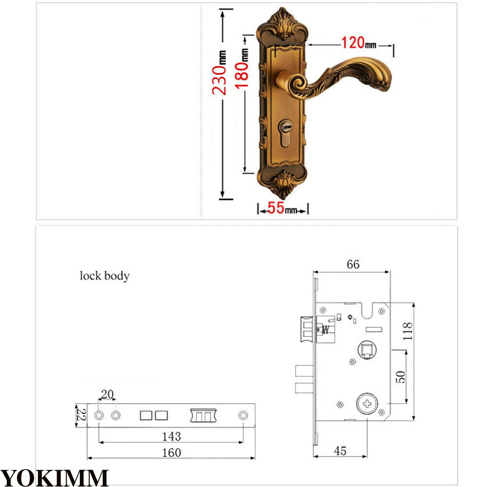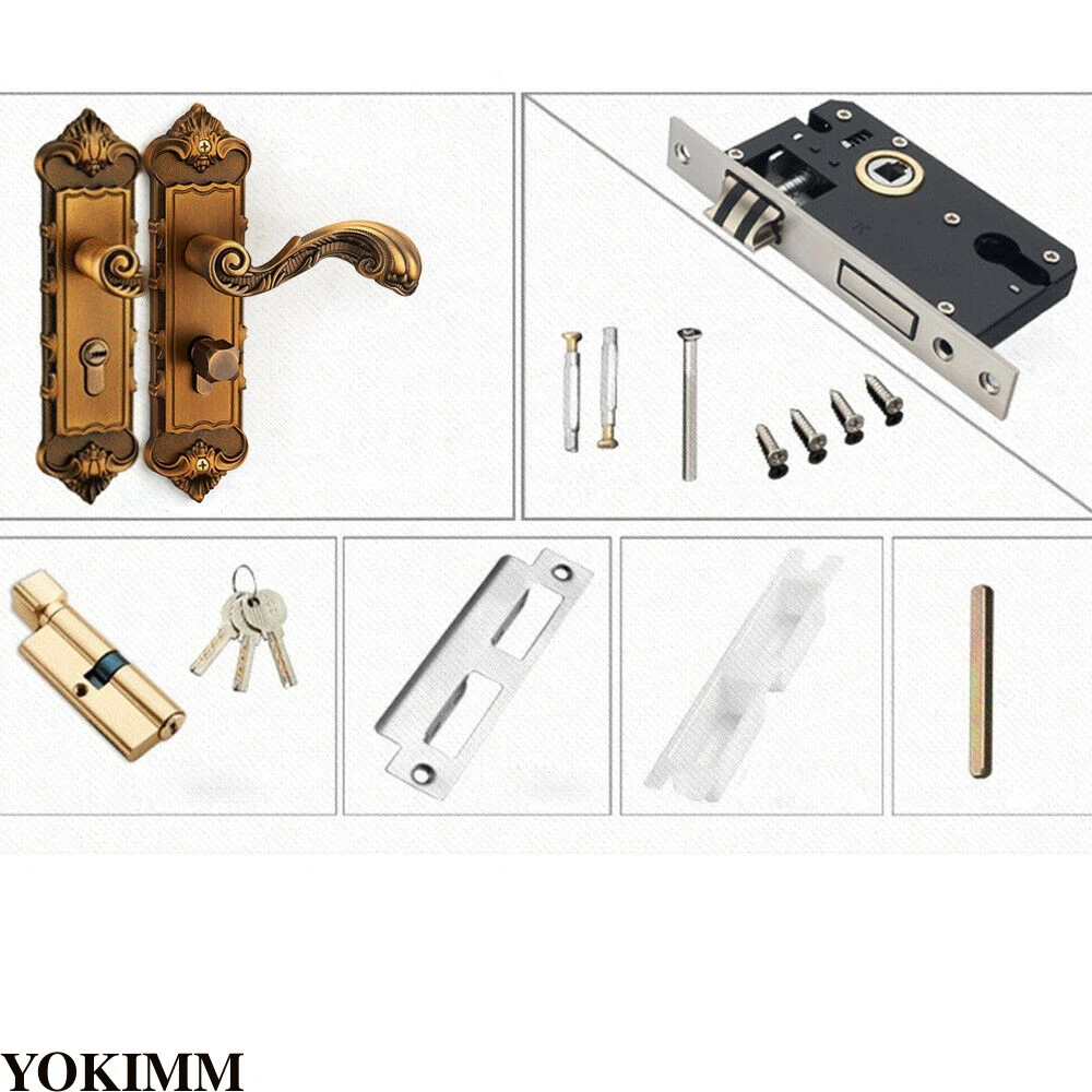 Retro Interior exterior Door Lock Knob Lever Security Lathes Mortise Lock Description Security Entry Lever Door Lock Set Dual Knob Yellow Bronze Handle Lockset + keys Description: Material: Zinc alloy Main Color: Yellow Bronze Opening direction: universal Apply: Solid wood doors, Steel-wood doors, Composite doors Suitable for door thickness: 35-45mm Center distance: Approx. 50mm Side Distance: Approx. 45mm Size (Approx.): Door lock panel (LxW) 222mm x 55mm / 8.7"x2" Handle length: Approx. 12cm /4.72" Distance between mounting holes: 180mm/7.1" Features: Classic -- European-style carve, delicate shape, feeling more comfortable. Durable -- Plating handle surface Copper marbles-- Not rust, keys in and out smoothly, durable. High Quality--lock tongue buffers friction between door and doorpost, excellent mute effect and better security, extends the use life of the lock tongue. Package Include: 2 x Handles 1 x Door cylinder 3 x Keys 1 set x Screws Notice: 1. Please allow 1-3cm error due to manual measurement. 2. The color may have a little difference as the difference display, pls understand. Payment Delivery details Terms of sales About us Contact us Payment We accept ebay payment 。 Fees such as import duties, taxes are not included in the item price or shipping costs. These charges are the buyer's responsibility. Delivery details Shipping: 2-9 working days to: USA Terms of sales We maintain high standards of excellence and strive for hundred percent customer satisfaction. Feedback is very important to us. We hope that you contact us immediately before you give neutral or negative feedback, so that we can address your concerns. It is impossible to address issues if we do not know about them! About us Your satis faction is our ultimate goal. We work hard to earn your trust and future business. Our certified technicians have tested each item before shipping. The unit comes with 1 year limited warranty on all manufacturing defects. a) If you receive a defective item, you may return it or ask for a discount. Please contact us within 14 days after you receive the package. b) What you returned must be intact and in its original packaging as re? u. Customer is responsible for shipping costs of the returned item. c) We will cover the cost of shipping back t with the shipping rate indicated in the registration page. We will send you a new unit or refund the full payment you paid. Thank you. Contact us Business Hour Business Hour: Monday To Friday: 8:30 AM to 5:00 PM (Beijing China time) Due to time zones, our reply to your questions may not be immediately. But within above working time, we will reply your email within 24 hours. If it's non-workdays, please kindly be patient and wait till Monday. Please contact us with ebay message. Please feel free to contact us if you have any questions. Monday To Friday: 8:30 AM to 5:00 PM (Beijing China time) Due to time zones, our reply to your questions may not be immediately. But within above working time, we will reply your email within 24 hours. If it's non-workdays, please kindly be patient and wait till Monday. Please contact us with ebay message. Please feel free to contact us if you have any questions.