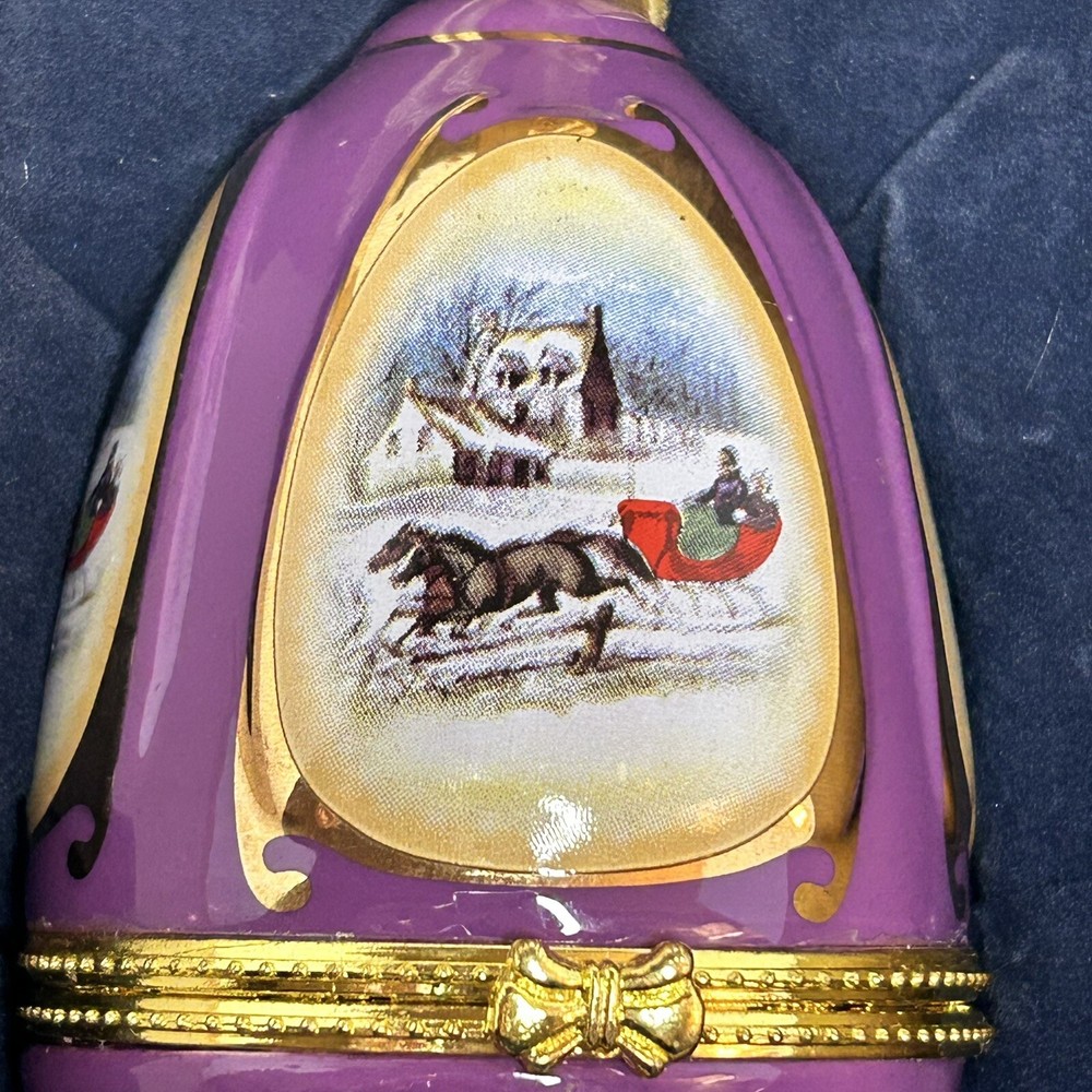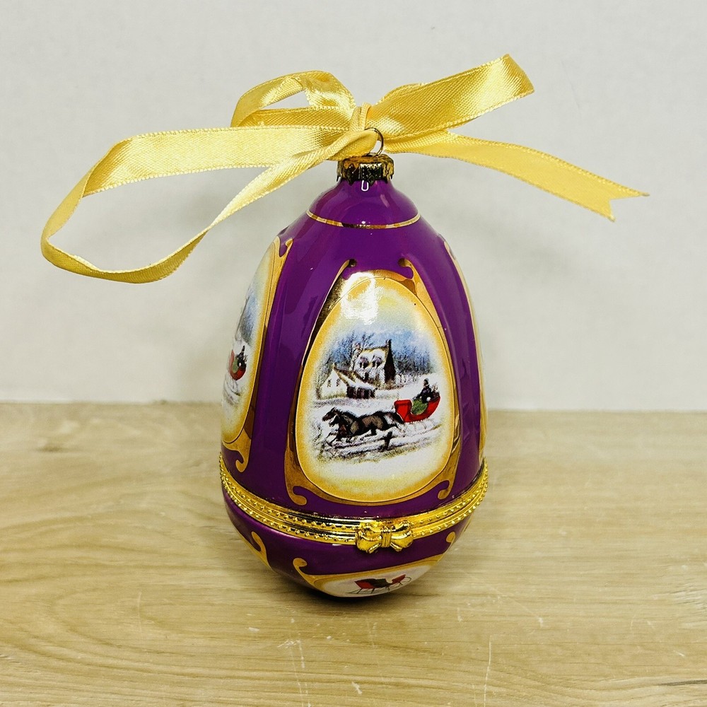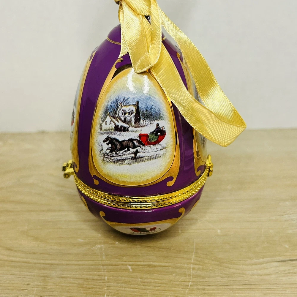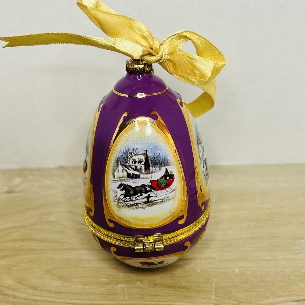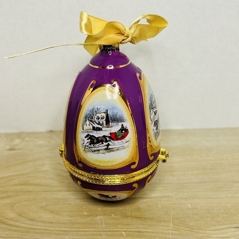 Vintage Mr Christmas purple porcelain egg ornament musical trinket box. Includes original box and instructions. Plays It Came Upon A Midnight Clear. In excellent, like new condition.