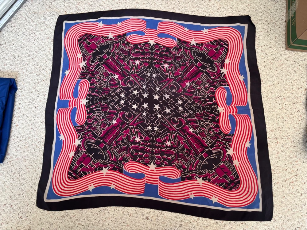 HomeVintage Multi Color Silk? Scarf Blue red purple black white 33x34