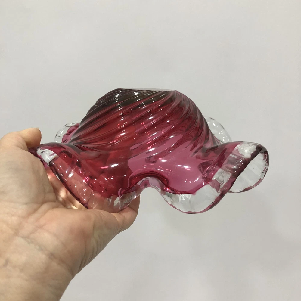 Vintage Art Glass Murano Style Berry Ruffled Hand Blown Candy Dish bowl 4.5”Tall; 8.5”Across. Condition is "Used in great shape! Please see pics for details. Shipped asap by USPS Priority Mail.