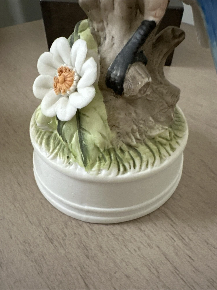 Vintage Musical Bluebird Porcelain Statue Figurine